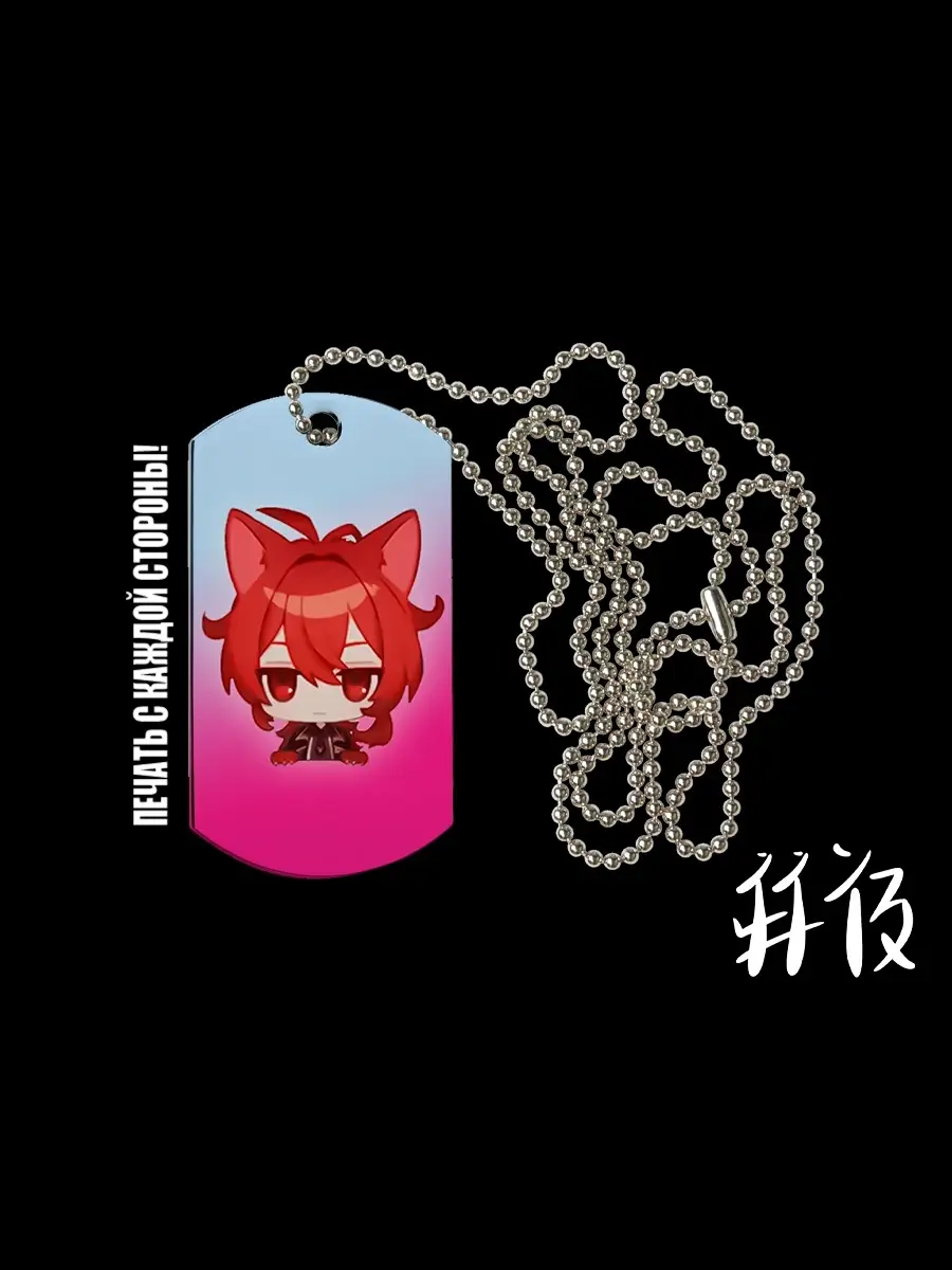 Жетон геншин импакт (Genshin Impact) Армейский жетон с двусторонней (на каждой стороне жетона) печатью персонажей из аниме игры Геншин импакт (Genshin impact). Яркий брелок Геншин Импакт с цепочкой на шею - приятный и практичный подарок. Крепкий и увесистый брелок выполнен из алюминия. Глянцевое покрытие защищает печать, рисунок не стирается. В комплекте с брелоком идет цепочка на шею. Качественная печать, а так же варианты принтов на любой вкус. Любимые герои из аниме игры Геншин Импакт (Genshin impact) подарят море эмоций. Спасибо за внимание к нашей продукции путешественник! Армейский жетон, принт с двух сторон! Каждая сторона с картинкой персонажа из аниме игры Геншин Импакт (Genshin impact) Отличный подарок!