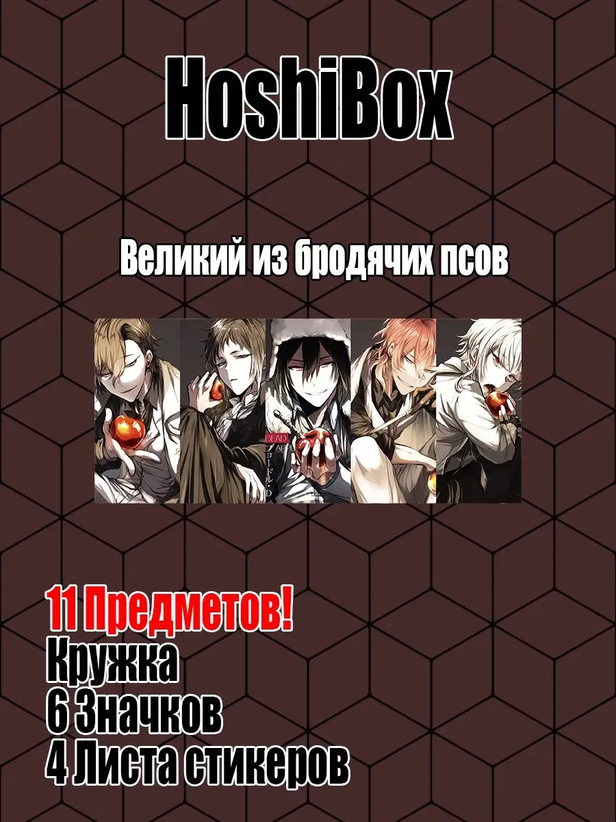 Набор из 11 предметов по вашим любимым аниме, играм, сериалам, а так же исполнителям. Наборы по: Баскетбол Куроко, Блич, Моя геройская академия, Бездомный бог, Гарри Поттер, Великий из бродячих псов, Волейбол Куроко, Евангелион, Хвост феи, Ведьмак, Патриотизм Мориарти, Магистр дьявольского культа, Stray Kids Ассортимент будет пополняться. Отличный подарок, как себе, так и дорогому человеку. В набор входит кружка, 6 значков 37 или 56мм, 4 листа стикеров А6 формата. Доставляется в картонной коробке, кружка дополнительно оборачивается пузырчатой плёнкой для сохранности.Спасибо за выбор нашего магазина, будем рады вашим заказам и отзывам).