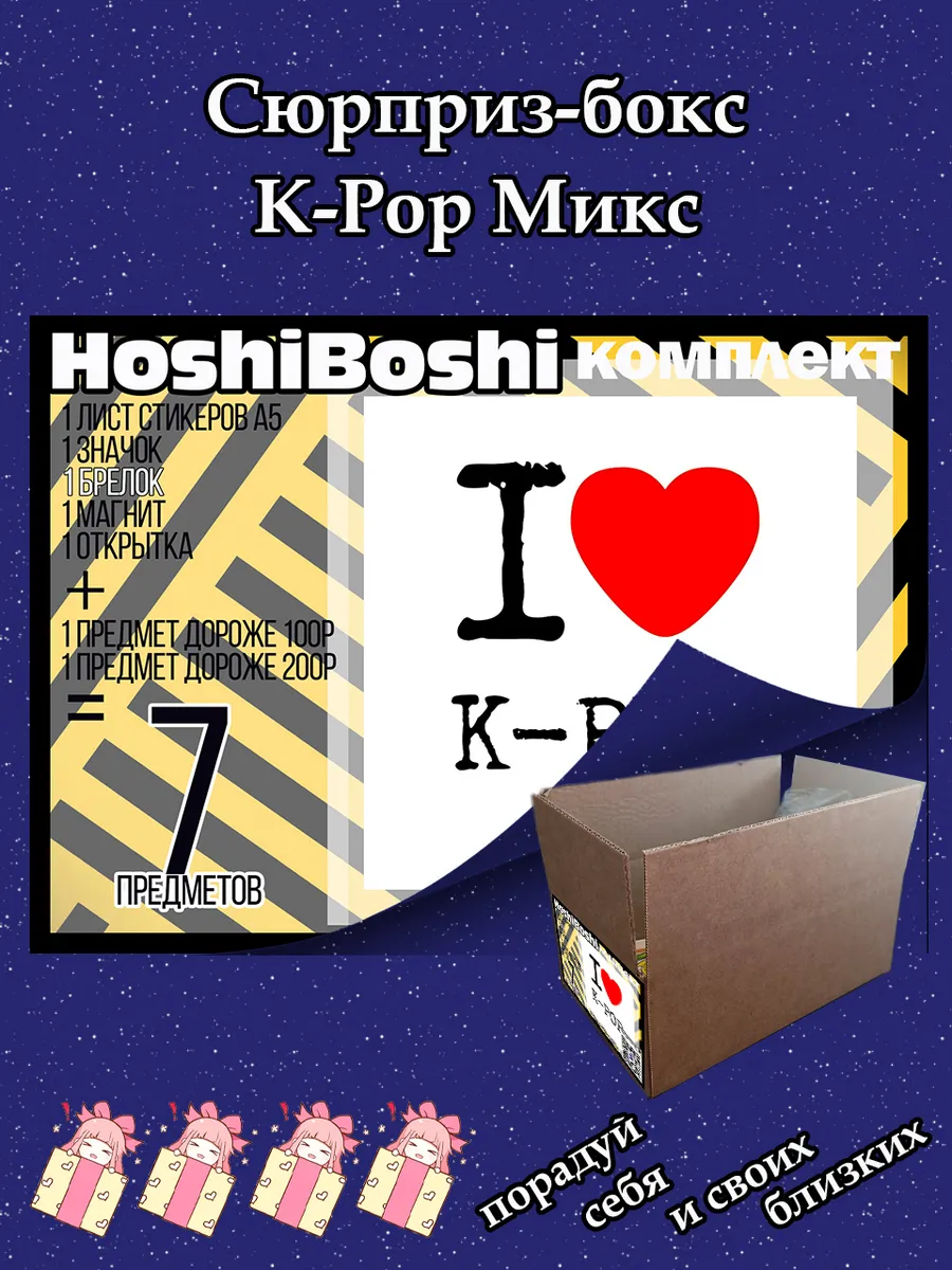 Наши наборы подойдут для девочек и для мальчиков, для школьников и для студентов и для всех любителей аниме, k-pop, компьютерных игр. Сюрприз-бокс - это отличный подарок детям и взрослым, на день рождения, на новый год, на 8 марта, на 23 февраля, а также это отличный подарок самому себе.