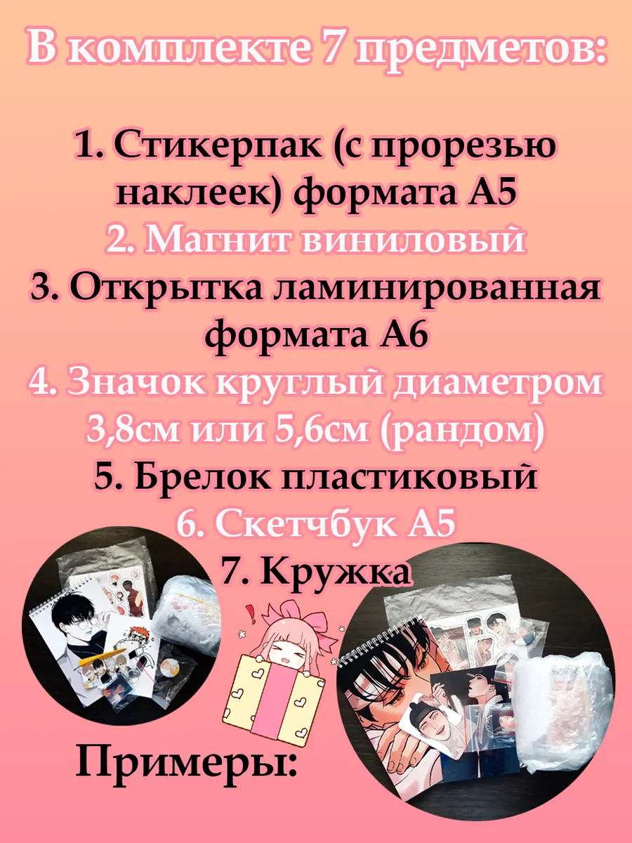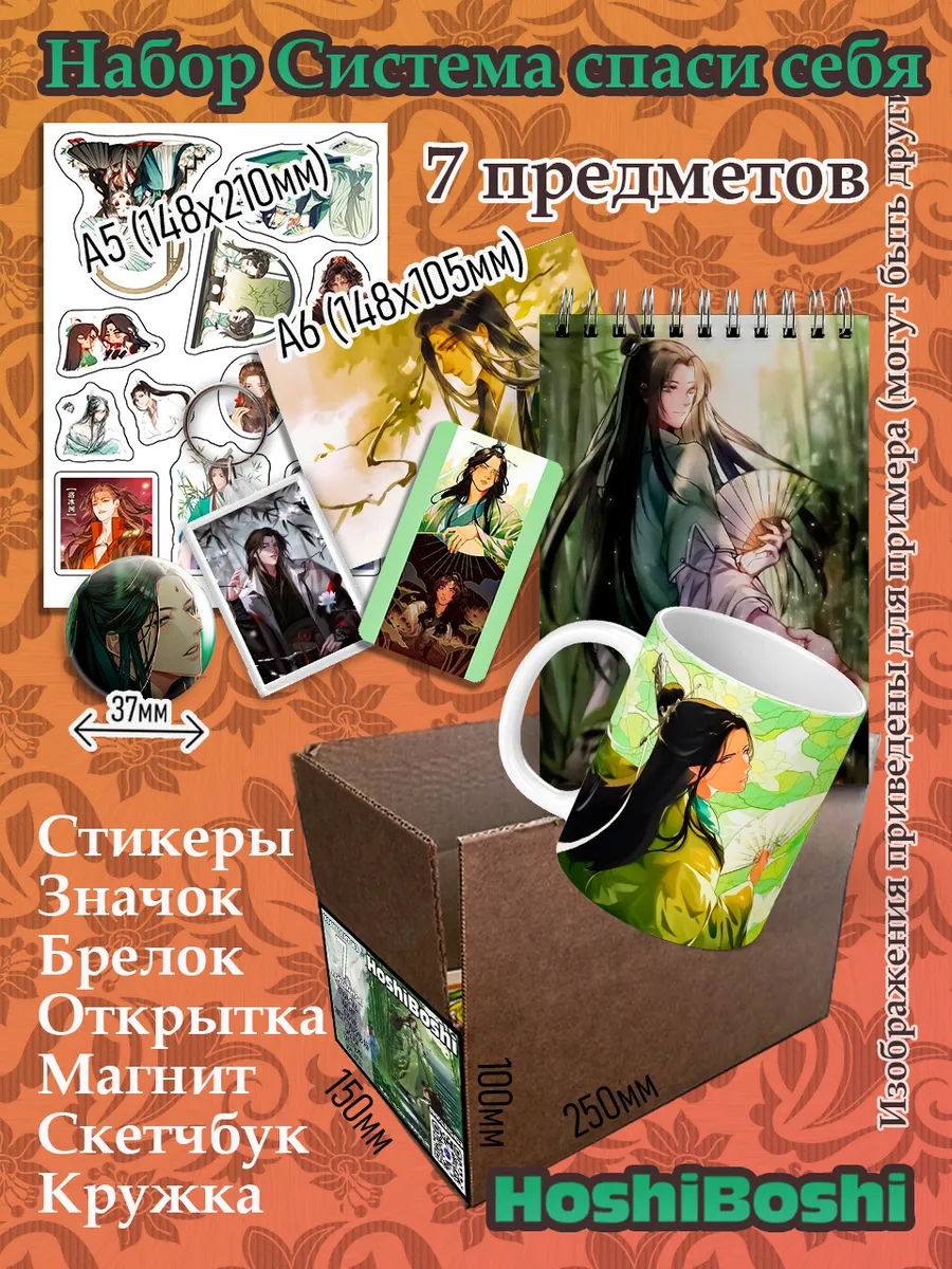 Представляем вам комплект "Система спаси себя сам для главного злодея" от HoshiBoshi – идеальный подарок для фанатов данной манхвы! Этот набор из 7 предметов станет отличным подарком для ваших близких или для вас самих. Внутри вас ждет настоящий кладезь милых мелочей: стильный значок, брелок, лист с наклейками, открытка, магнит, скетчбук и кружка.