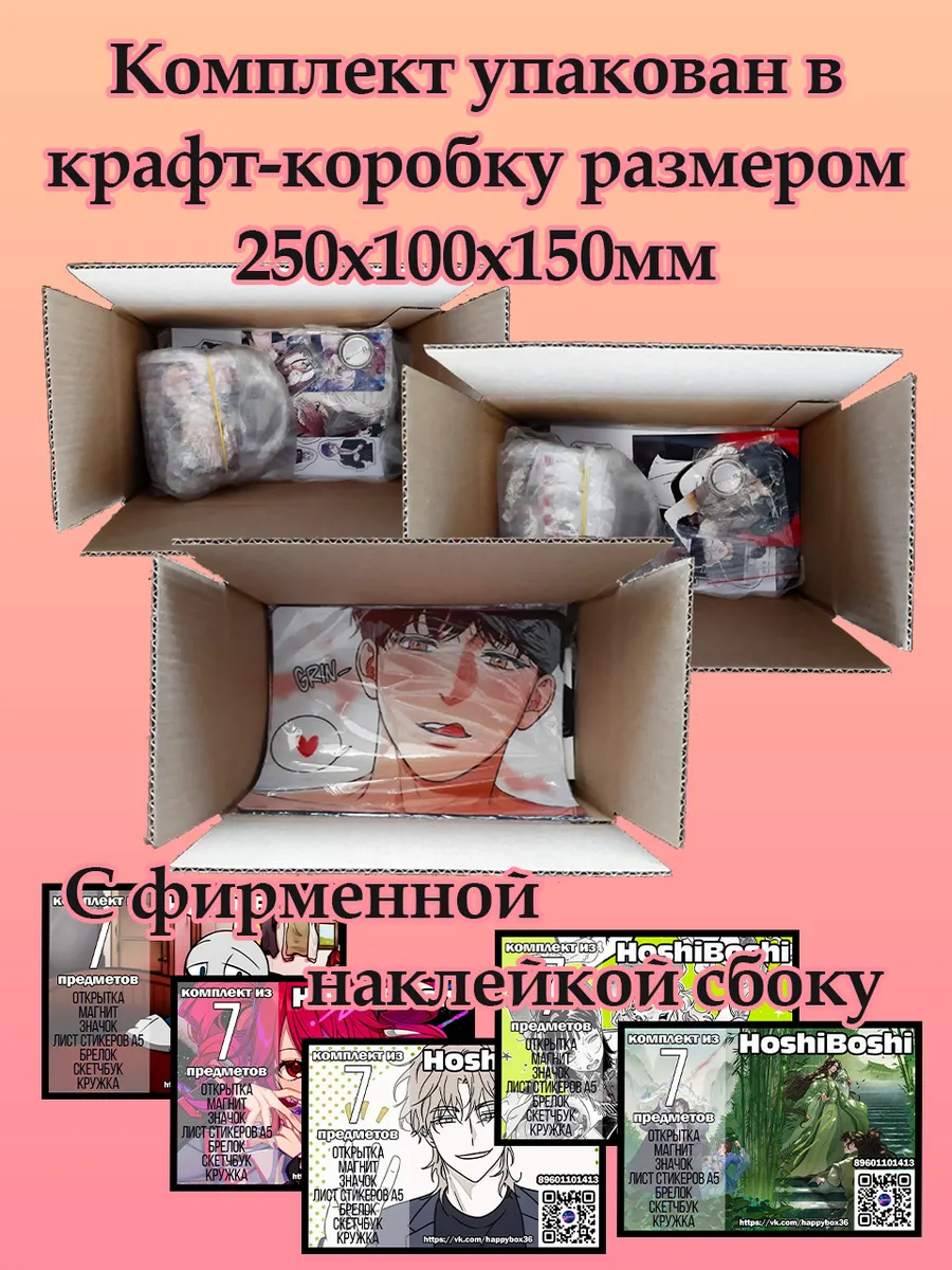 Представляем вам комплект "Your Boyfriend" от HoshiBoshi – идеальный подарок для фанатов данной игры! Этот набор из 7 предметов станет отличным подарком для ваших близких или для вас самих. Внутри вас ждет настоящий кладезь милых мелочей: стильный значок, брелок, лист с наклейками, открытка, магнит, скетчбук и кружка.