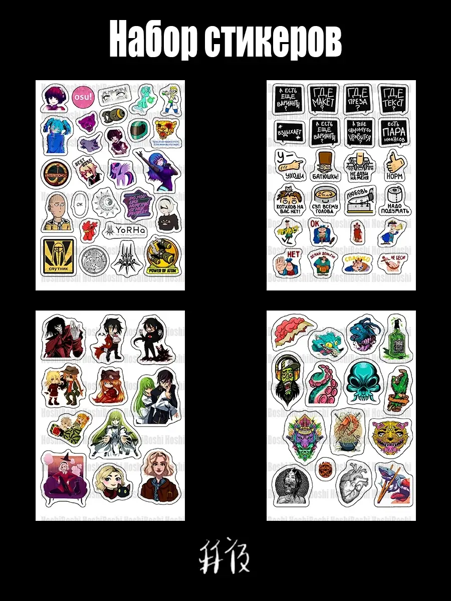Набор из наклеек с персонажами аниме игры геншин импакт, а так же вашими любимыми героями аниме сериалов. Универсальные бумажные наклейки аниме, k-pop, genshin impact подойдут для оформления ноутбука, телефона, чемодана, ежедневника, творческой работы, помогут быть индивидуальным. Набор бумажных наклеек аниме, k-pop, genshin impact стикеров для стикербомбинга лучший способ порадовать подростка или взрослого. Стикеры напечатаны на высококачественной плотной глянцевой фотобумаге, каждый стикер вырезан и легко вынимается с листа. В наборе идёт 4 листа А6 формата с стикерами из бумаги для использования внутри помещений, так как подвержены воздействию внешней среды. Стикеры для украшения проектов, ежедневника для девочки, женского дневника, творчество для подростка, оригинально украсить аксессуары для телефонов, наклейки стикеры можно клеить бутовую технику мебель канцелярию. Стикеры аниме, k-pop, genshin impact и многие другие!