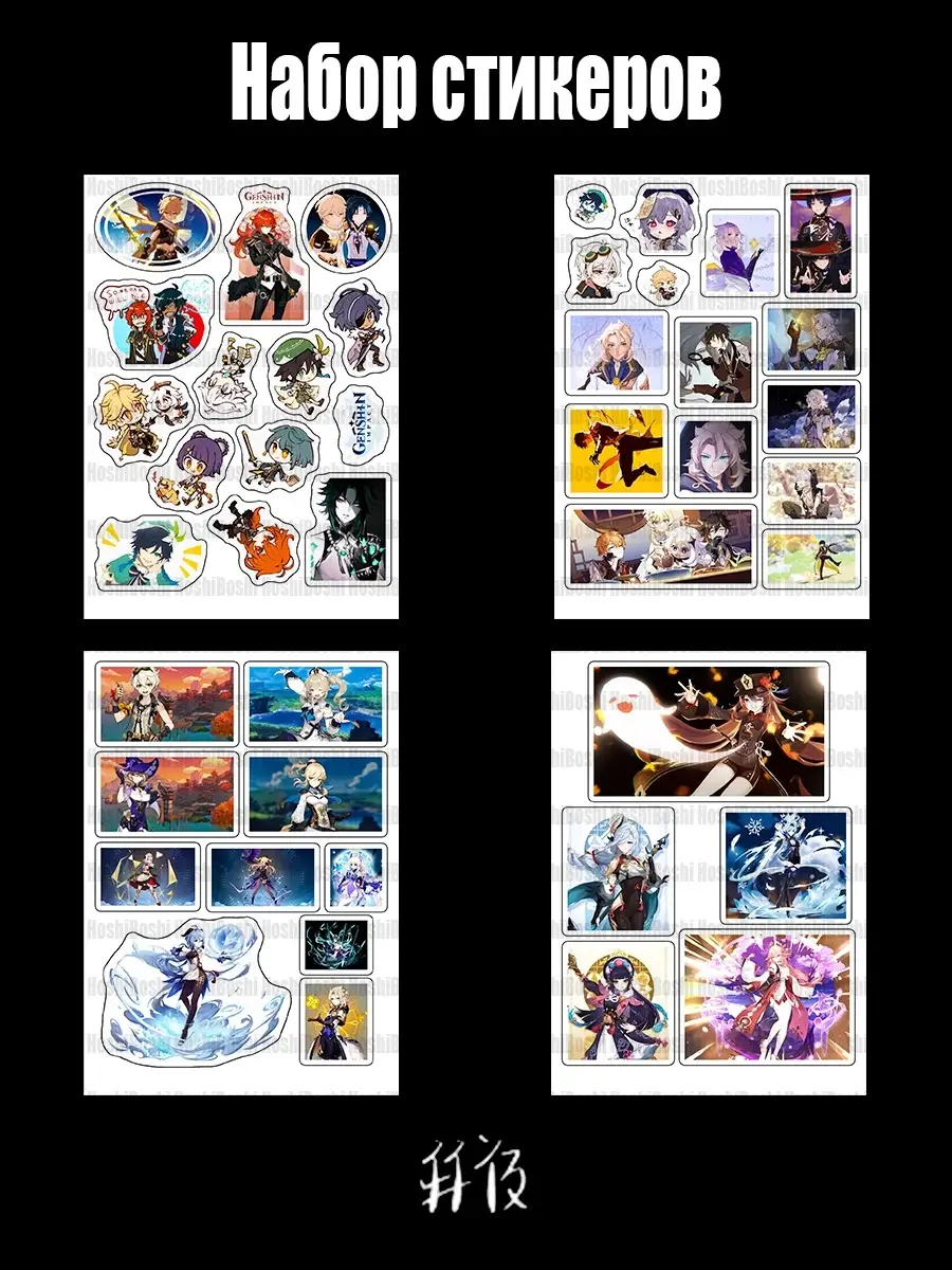 Набор из наклеек с персонажами аниме игры геншин импакт, а так же вашими любимыми героями аниме сериалов. Универсальные бумажные наклейки аниме, k-pop, genshin impact подойдут для оформления ноутбука, телефона, чемодана, ежедневника, творческой работы, помогут быть индивидуальным. Набор бумажных наклеек аниме, k-pop, genshin impact стикеров для стикербомбинга лучший способ порадовать подростка или взрослого. Стикеры напечатаны на высококачественной плотной глянцевой фотобумаге, каждый стикер вырезан и легко вынимается с листа. В наборе идёт 4 листа А6 формата с стикерами из бумаги для использования внутри помещений, так как подвержены воздействию внешней среды. Стикеры для украшения проектов, ежедневника для девочки, женского дневника, творчество для подростка, оригинально украсить аксессуары для телефонов, наклейки стикеры можно клеить бутовую технику мебель канцелярию. Стикеры аниме, k-pop, genshin impact и многие другие!
