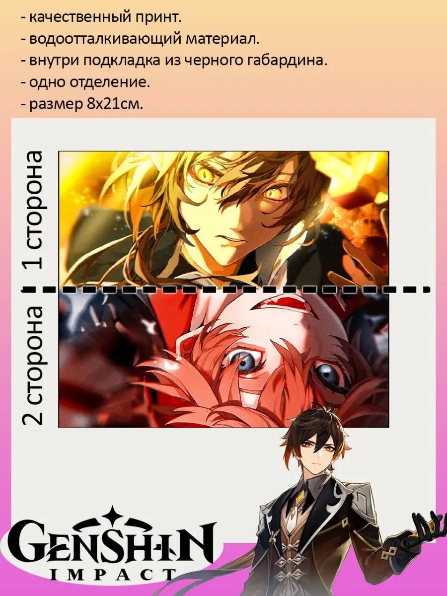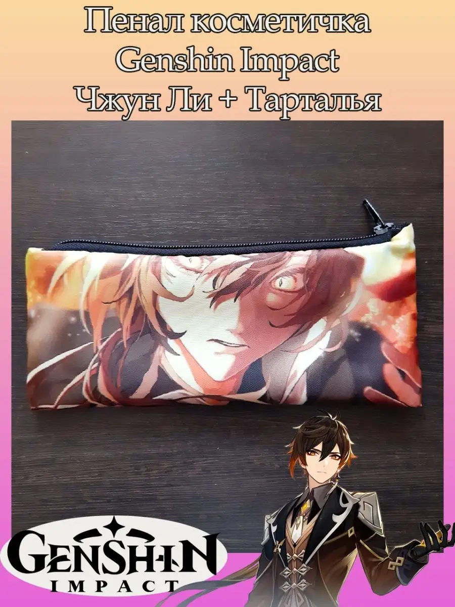 Пенал школьный с большой молнией и с одним вместительным отделением. Изображение из игры Геншин Импакт (Genshin Impact). Принт яркий и четкий, устойчивый к выцветанию и стирке.