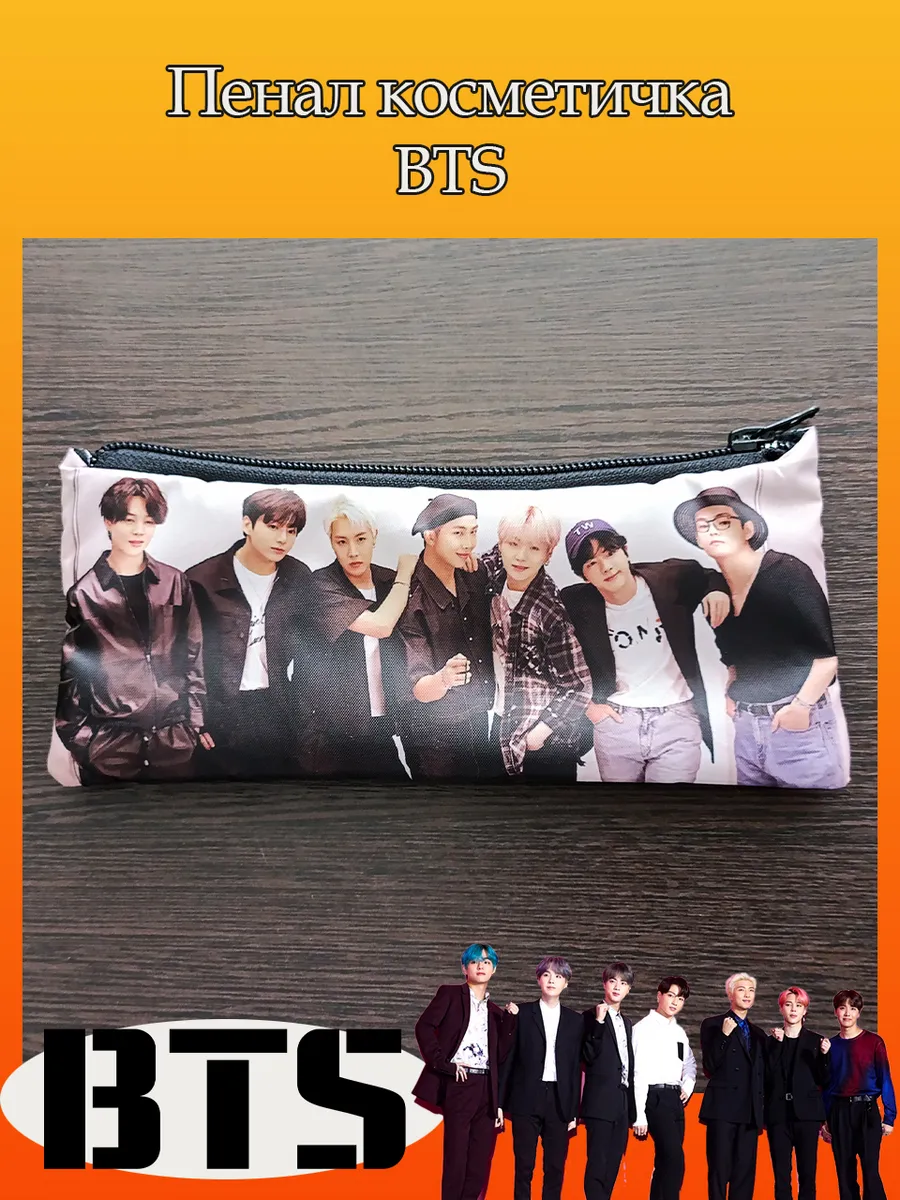 Пенал школьный с большой молнией и с одним вместительным отделением. Изображение к-поп группа БТС (BTS). Принт яркий и четкий, устойчивый к выцветанию и стирке.