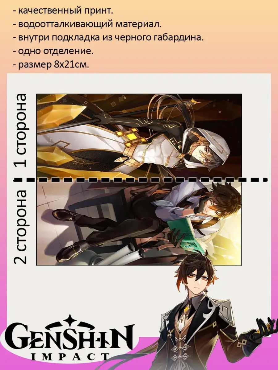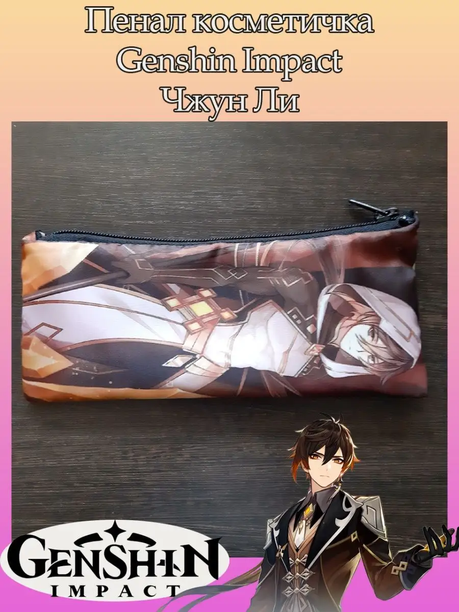 Пенал школьный с большой молнией и с одним вместительным отделением. Изображение из игры Геншин Импакт (Genshin Impact). Принт яркий и четкий, устойчивый к выцветанию и стирке.