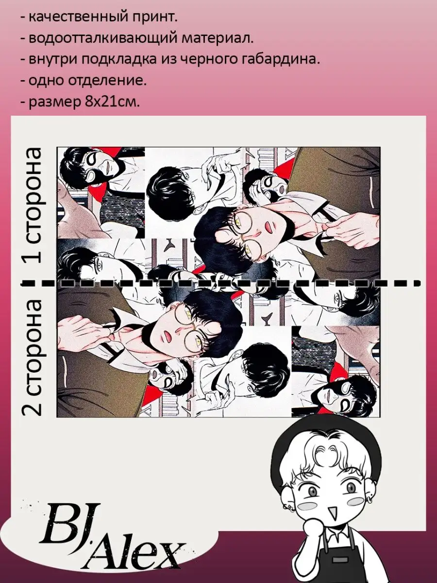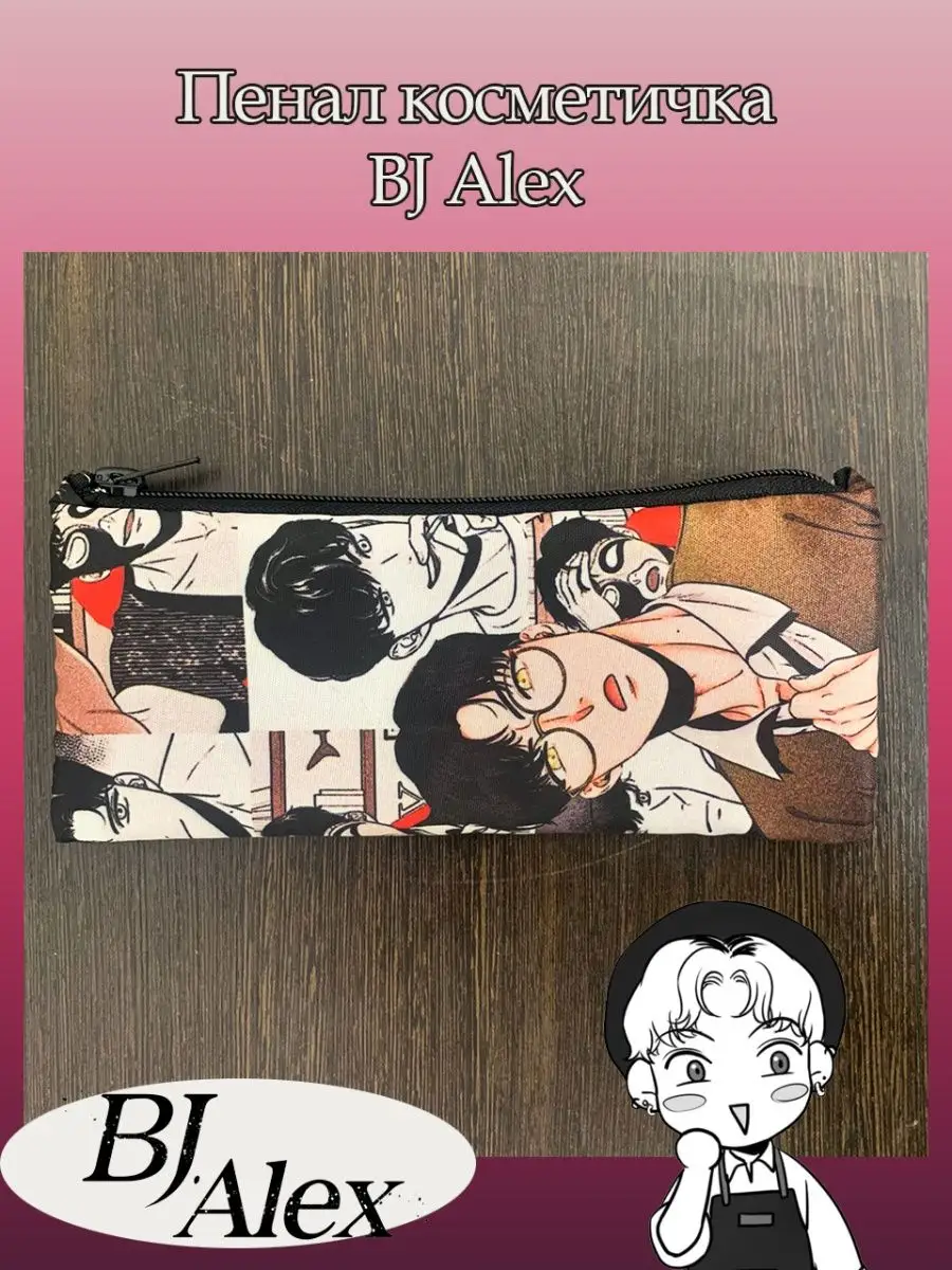 Пенал школьный с большой молнией и с одним вместительным отделением. Изображение из манги Би Джей Алекс (BJ Alex). Принт яркий и четкий, устойчивый к выцветанию и стирке.