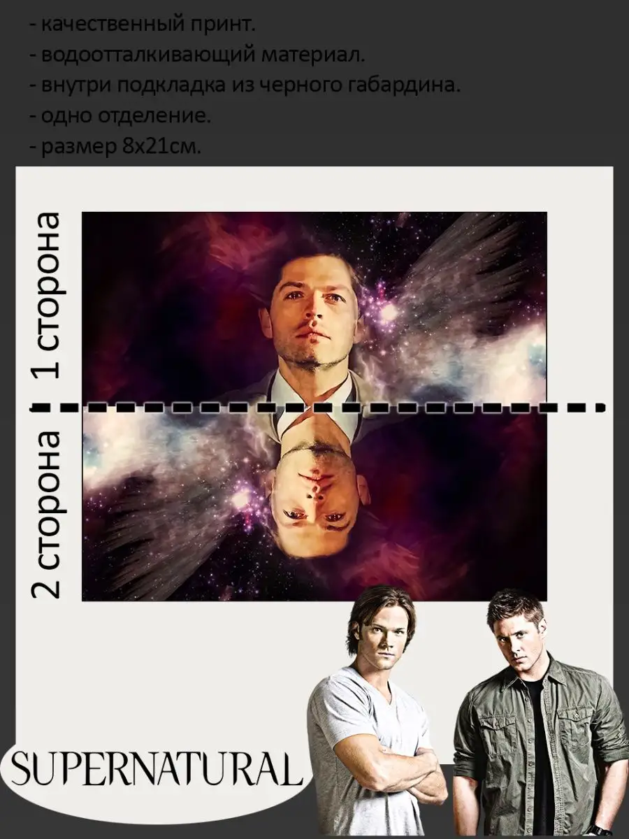 Пенал школьный с большой молнией и с одним вместительным отделением. Изображение из сериала Сверхъестественное (Supernatural). Принт яркий и четкий, устойчивый к выцветанию и стирке.