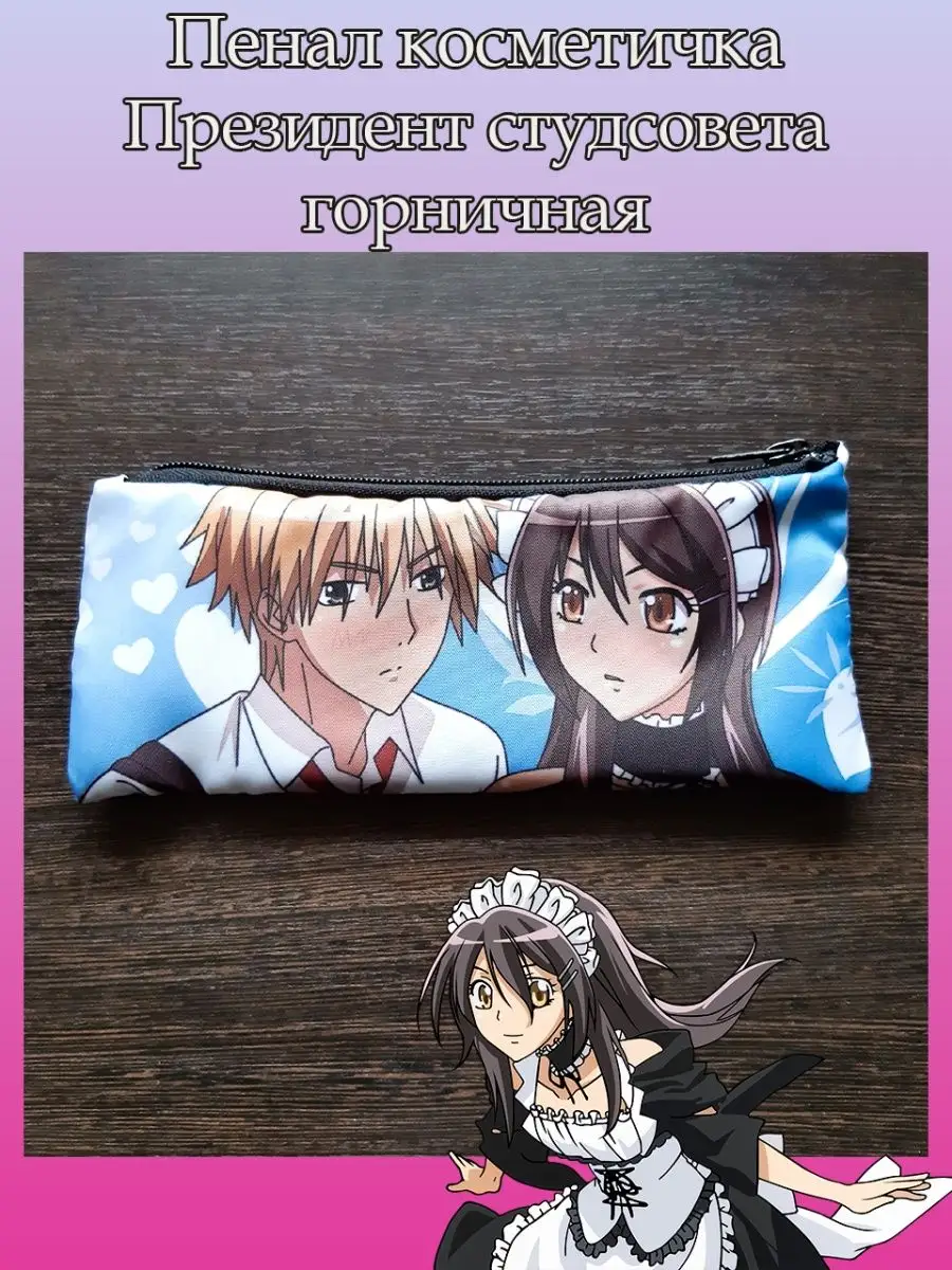 Пенал школьный с большой молнией и с одним вместительным отделением. Изображение из аниме Президент студсовета горничная (Kaichou wa Maid-sama!). Принт яркий и четкий, устойчивый к выцветанию и стирке.
