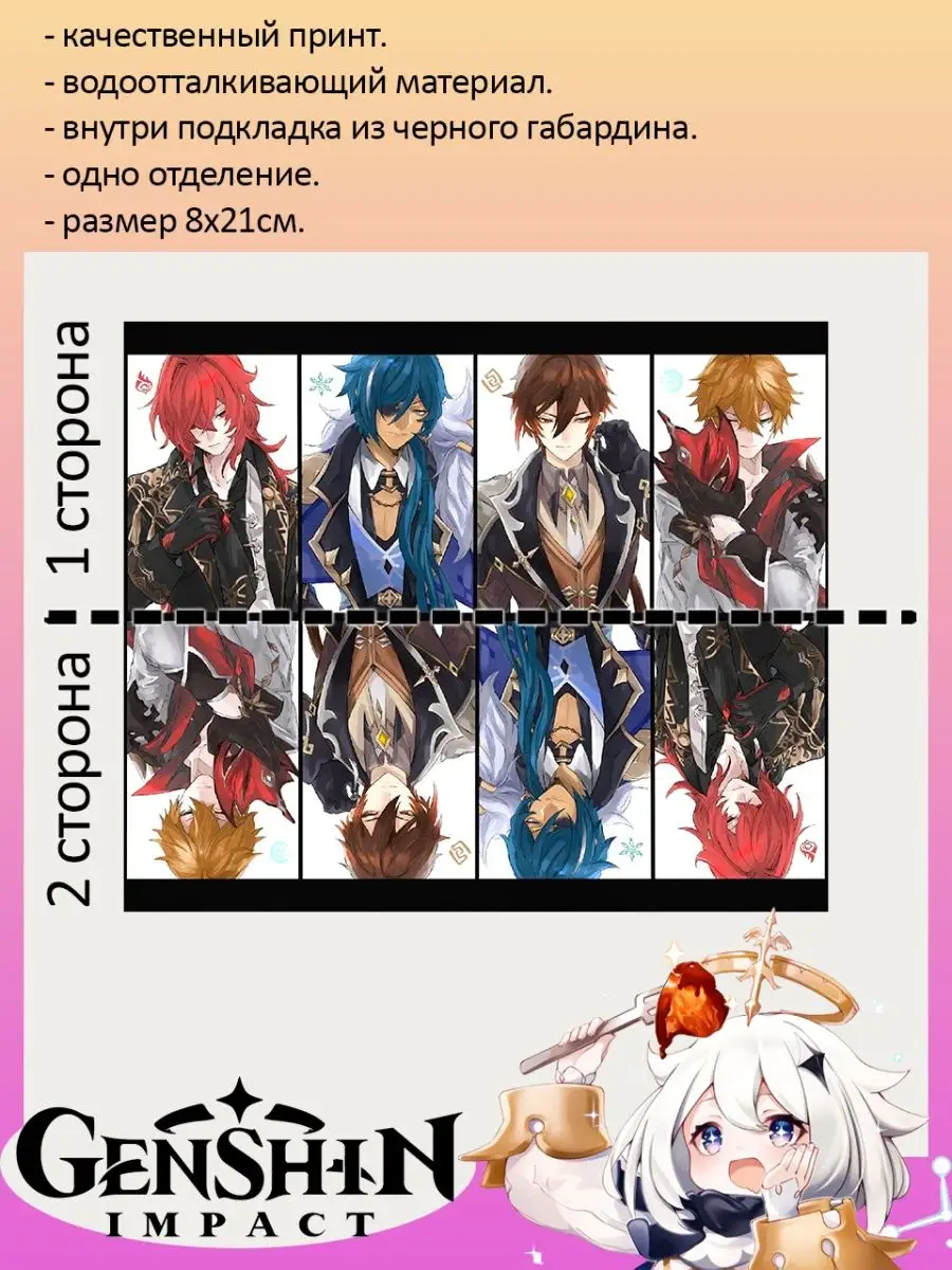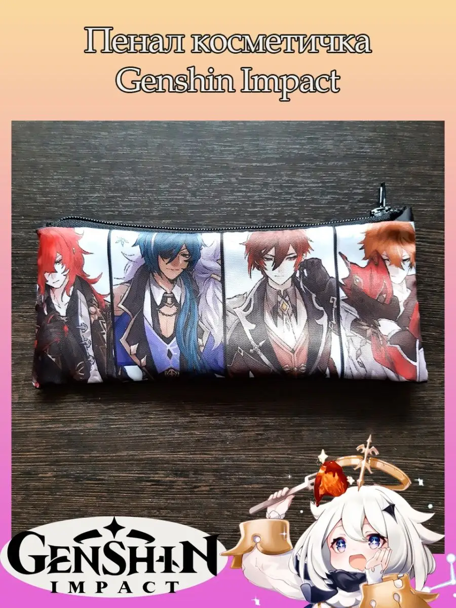 Пенал школьный с большой молнией и с одним вместительным отделением. Изображение из игры Геншин Импакт (Genshin Impact). Принт яркий и четкий, устойчивый к выцветанию и стирке.