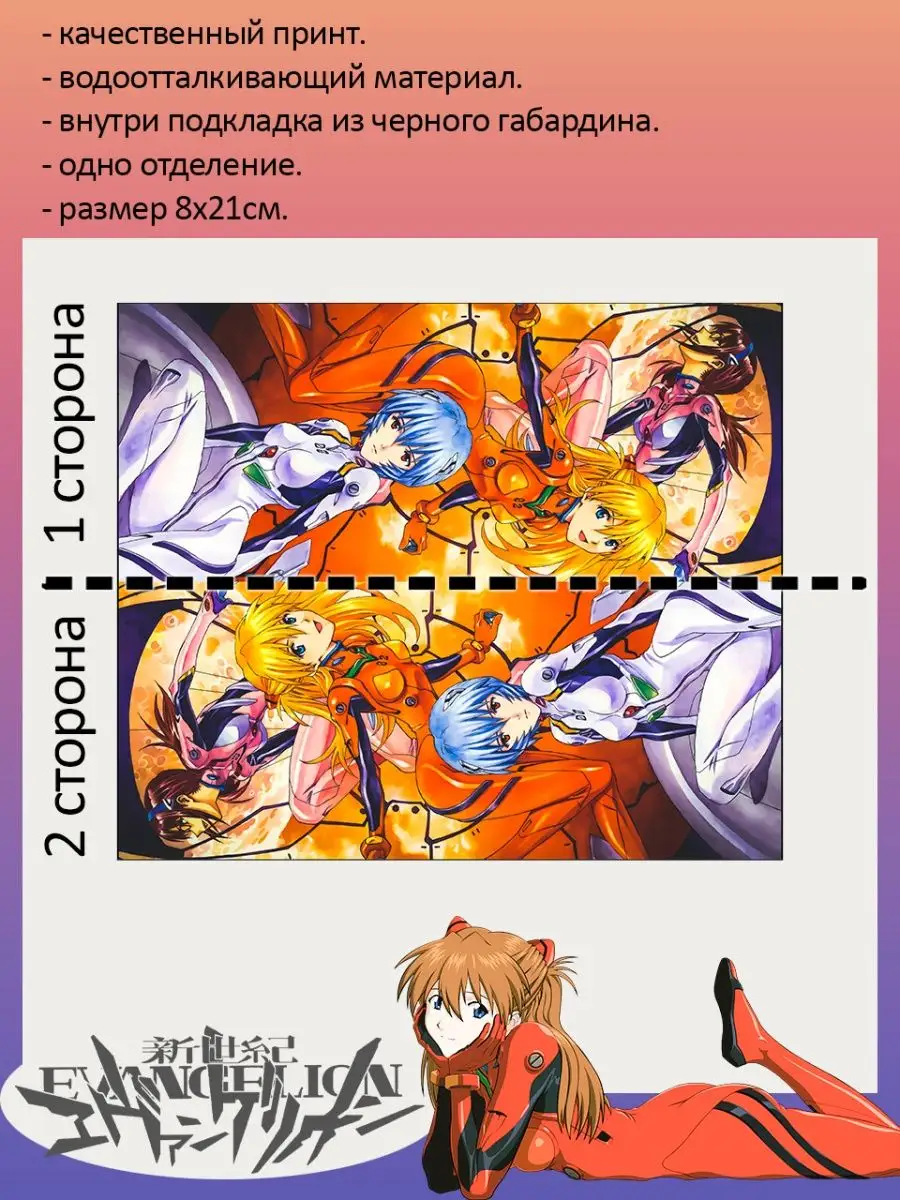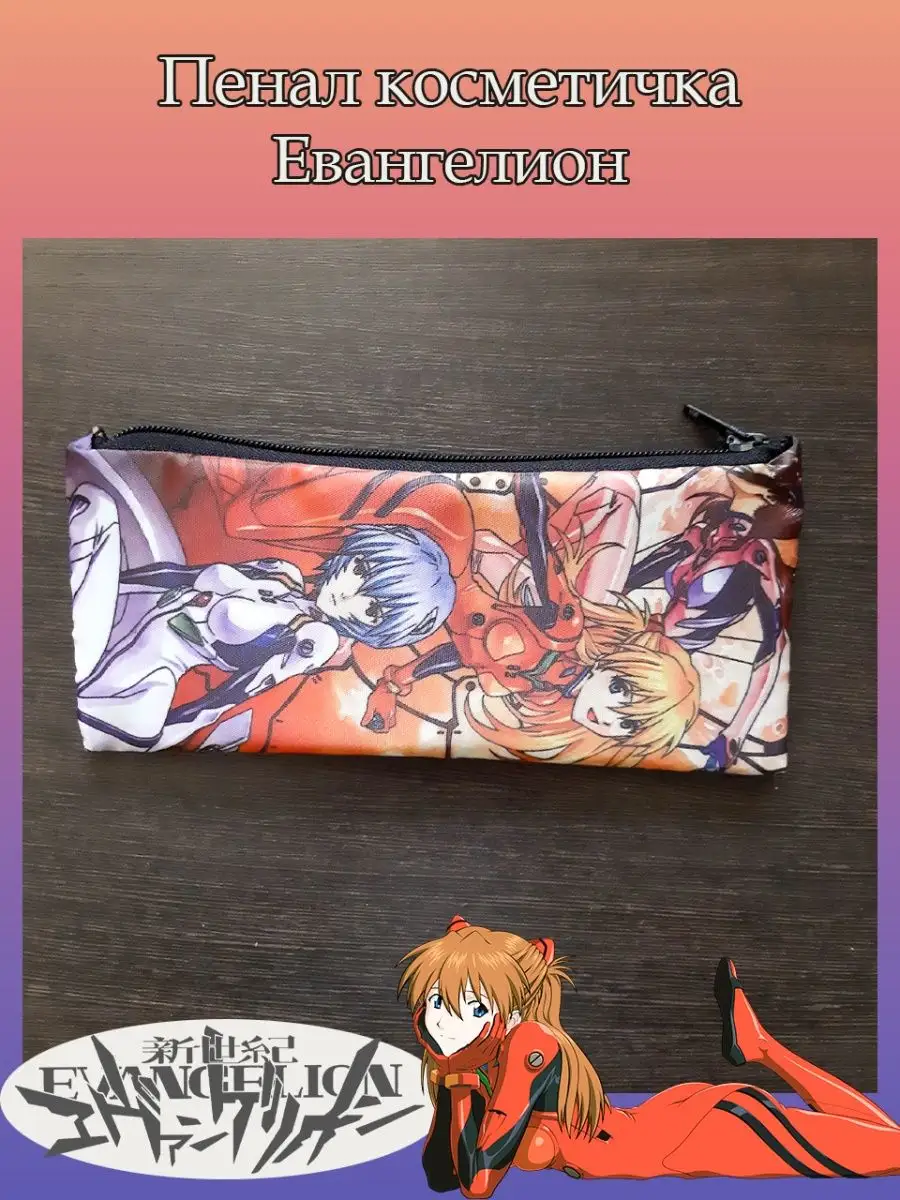 Пенал школьный с большой молнией и с одним вместительным отделением. Изображение из аниме Евангелион (Evangelion). Принт яркий и четкий, устойчивый к выцветанию и стирке.