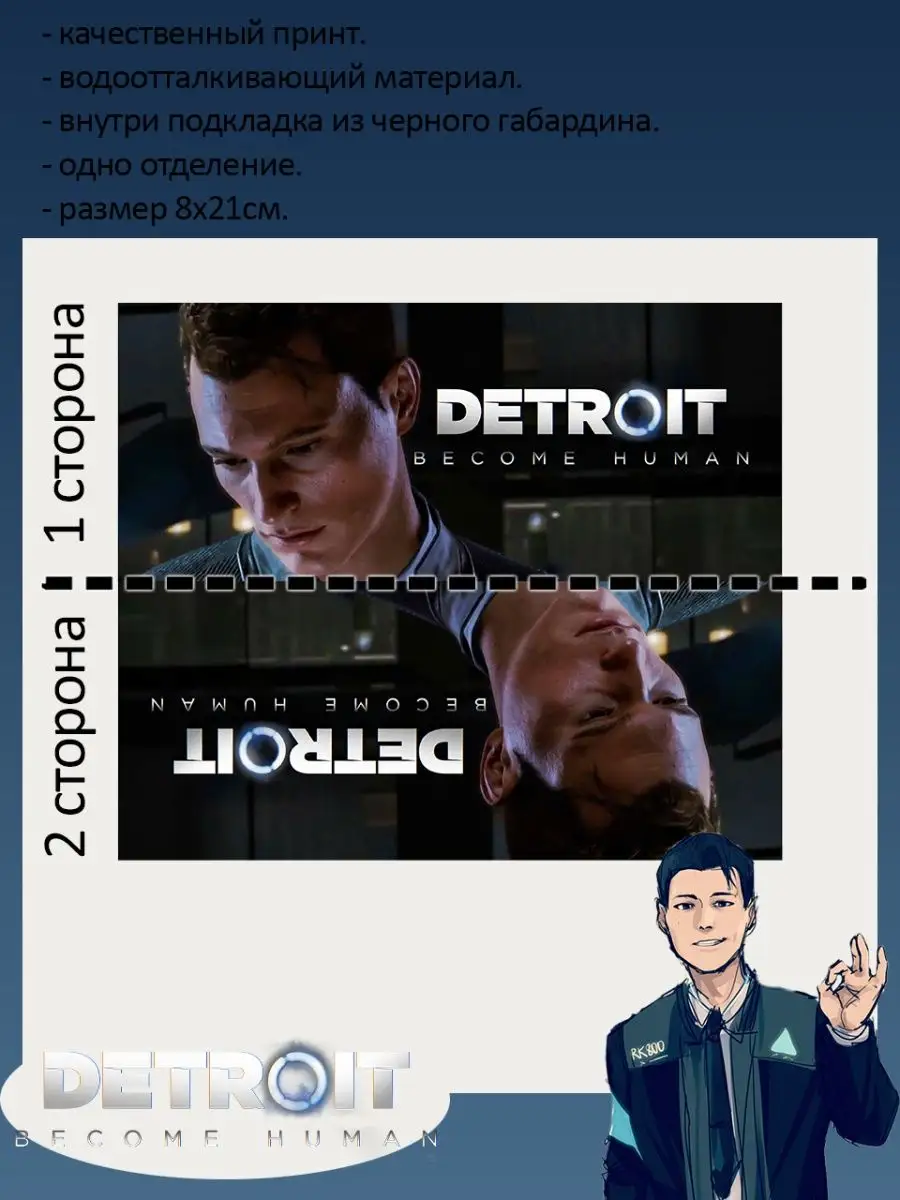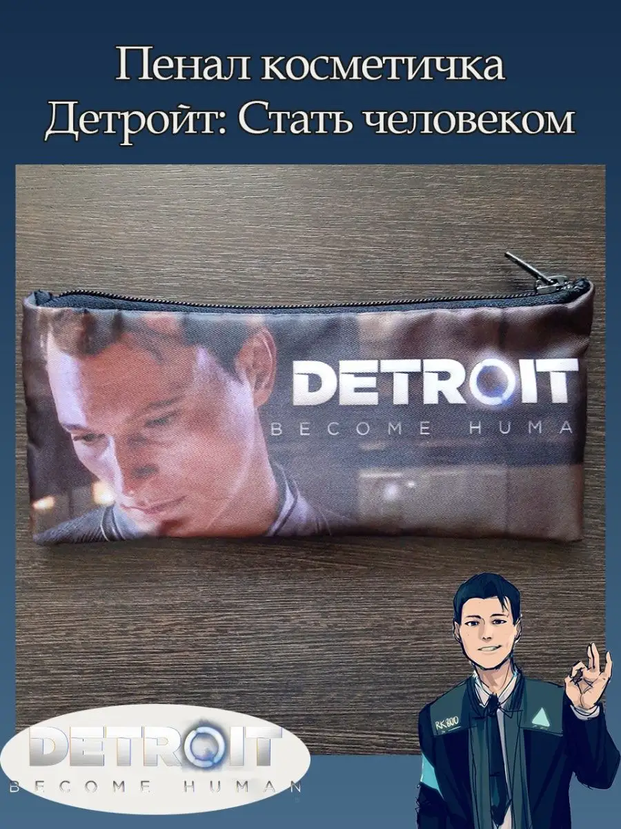 Пенал школьный с большой молнией и с одним вместительным отделением. Изображение из игры Детройт: стать человеком (Detroit: Become Human). Принт яркий и четкий, устойчивый к выцветанию и стирке.