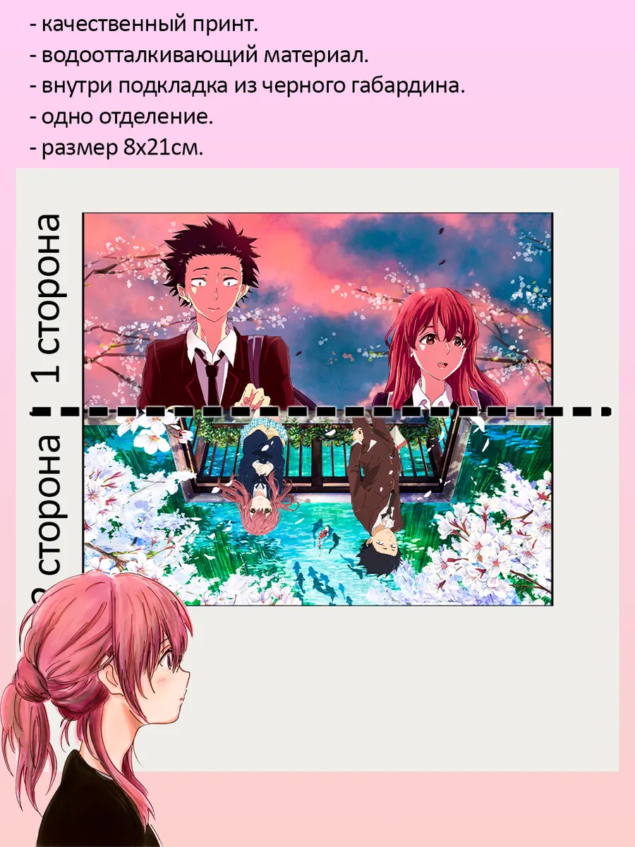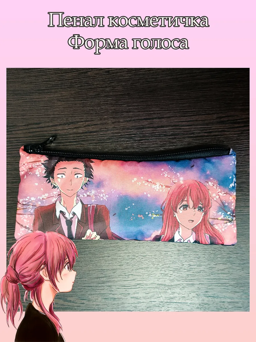 Пенал школьный с большой молнией и с одним вместительным отделением. Изображение из аниме Форма голоса (A Silent Voice). Принт яркий и четкий, устойчивый к выцветанию и стирке.
