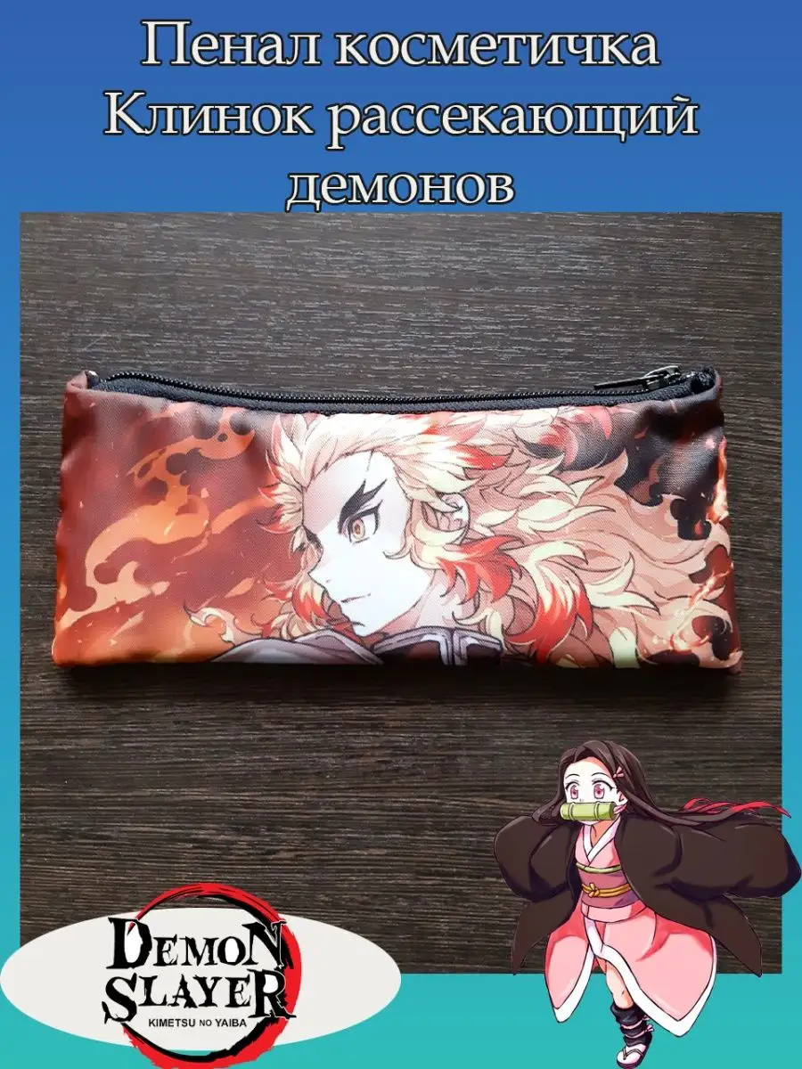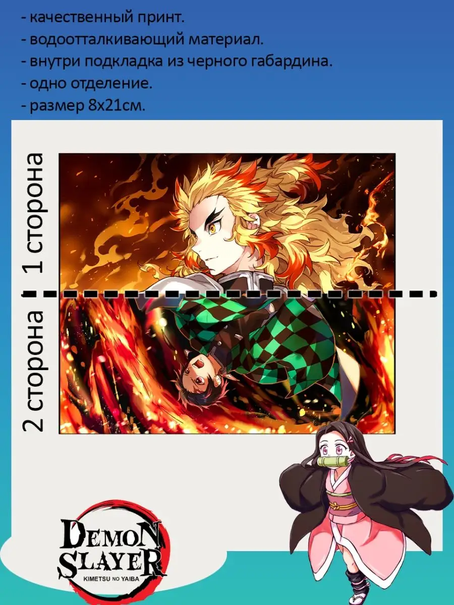 Пенал школьный с большой молнией и с одним вместительным отделением. Изображение из аниме Клинок рассекающий демонов (Demon Slayer: Kimetsu no Yaiba). Принт яркий и четкий, устойчивый к выцветанию и стирке.