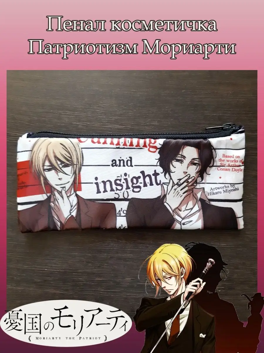 Пенал школьный с большой молнией и с одним вместительным отделением. Изображение из аниме Патриотизм Мориарти (Moriarty the Patriot). Принт яркий и четкий, устойчивый к выцветанию и стирке.