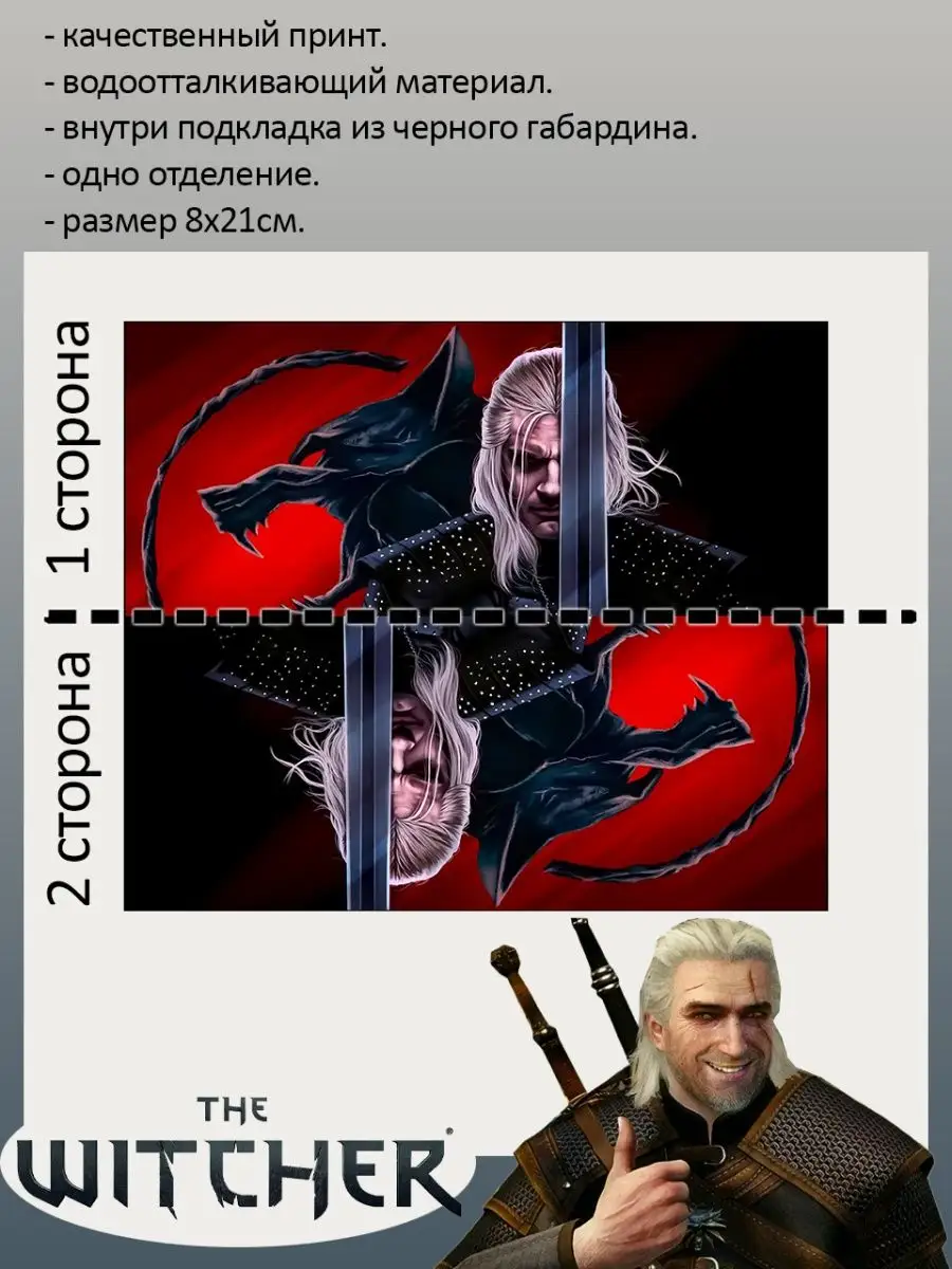 Пенал школьный с большой молнией и с одним вместительным отделением. Изображение из вселенной Ведьмак (The Witcher). Принт яркий и четкий, устойчивый к выцветанию и стирке.