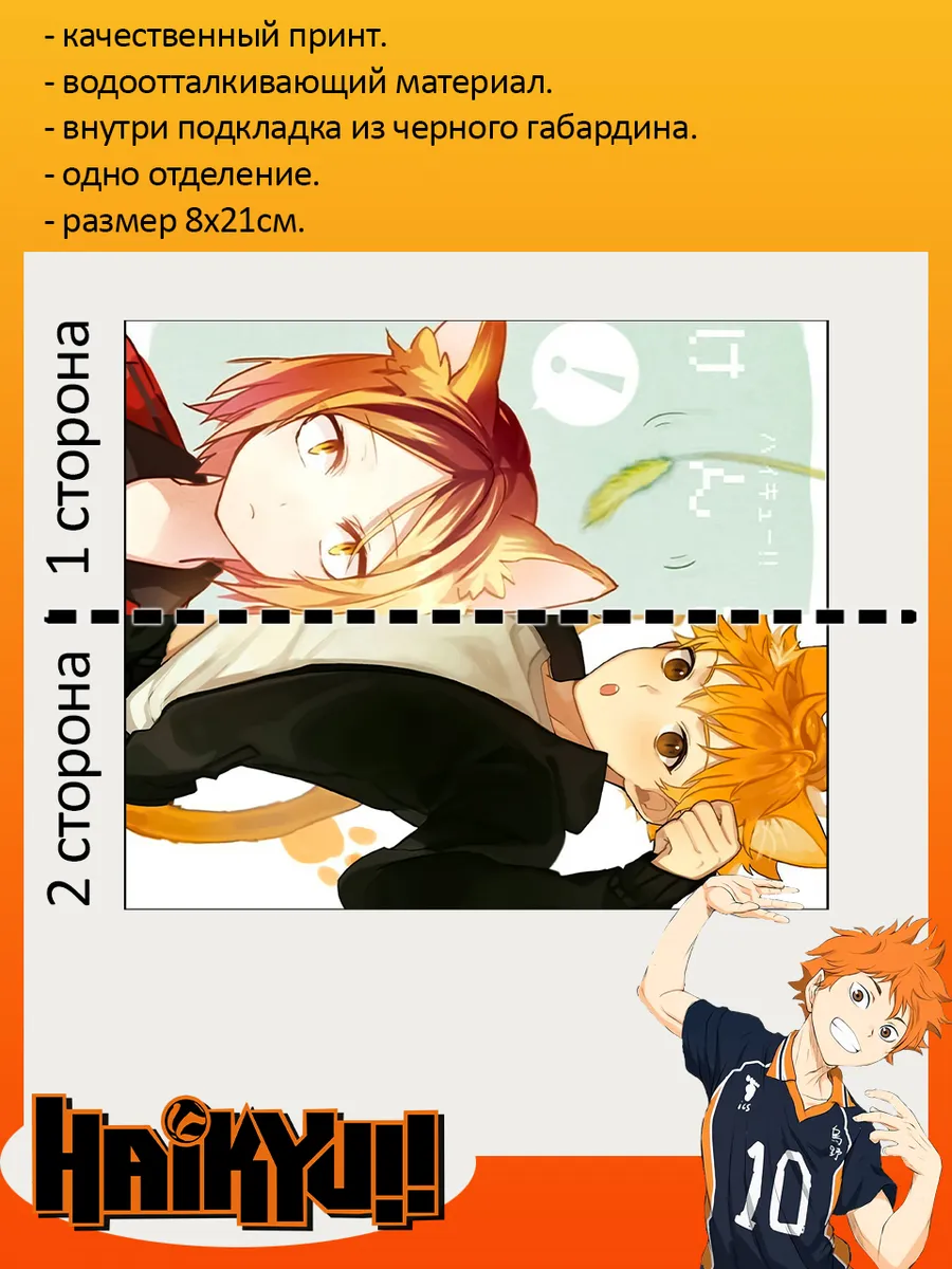Пенал школьный с большой молнией и с одним вместительным отделением. Изображение из аниме Волейбол (Haikyu!!). Принт яркий и четкий, устойчивый к выцветанию и стирке.