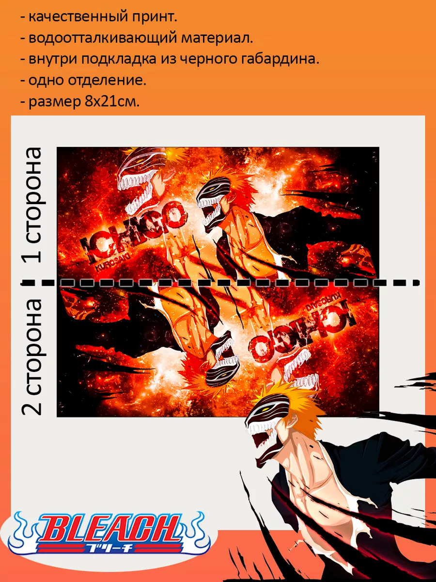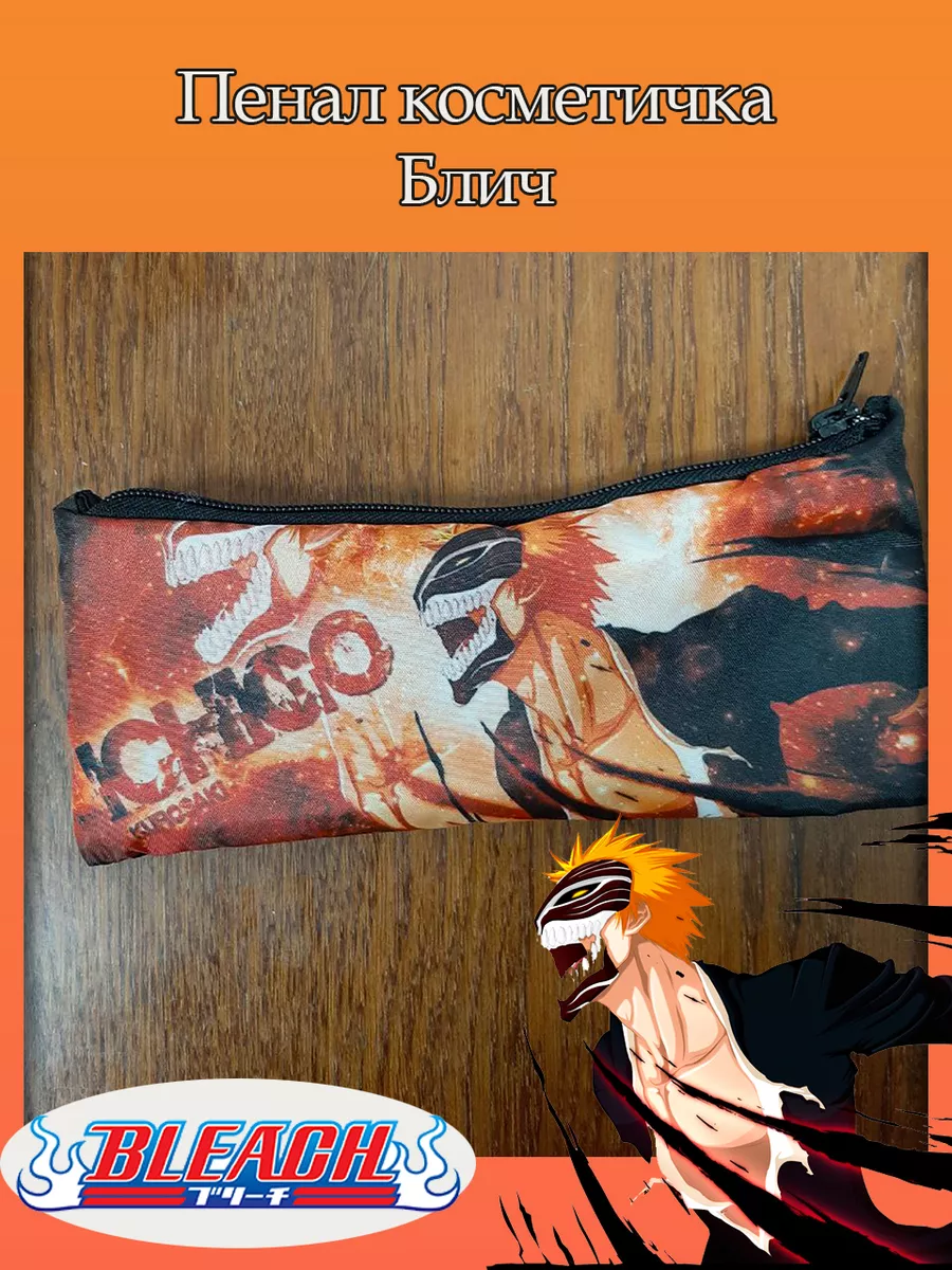 Пенал школьный с большой молнией и с одним вместительным отделением. Изображение из аниме Блич (BLEACH). Принт яркий и четкий, устойчивый к выцветанию и стирке.
