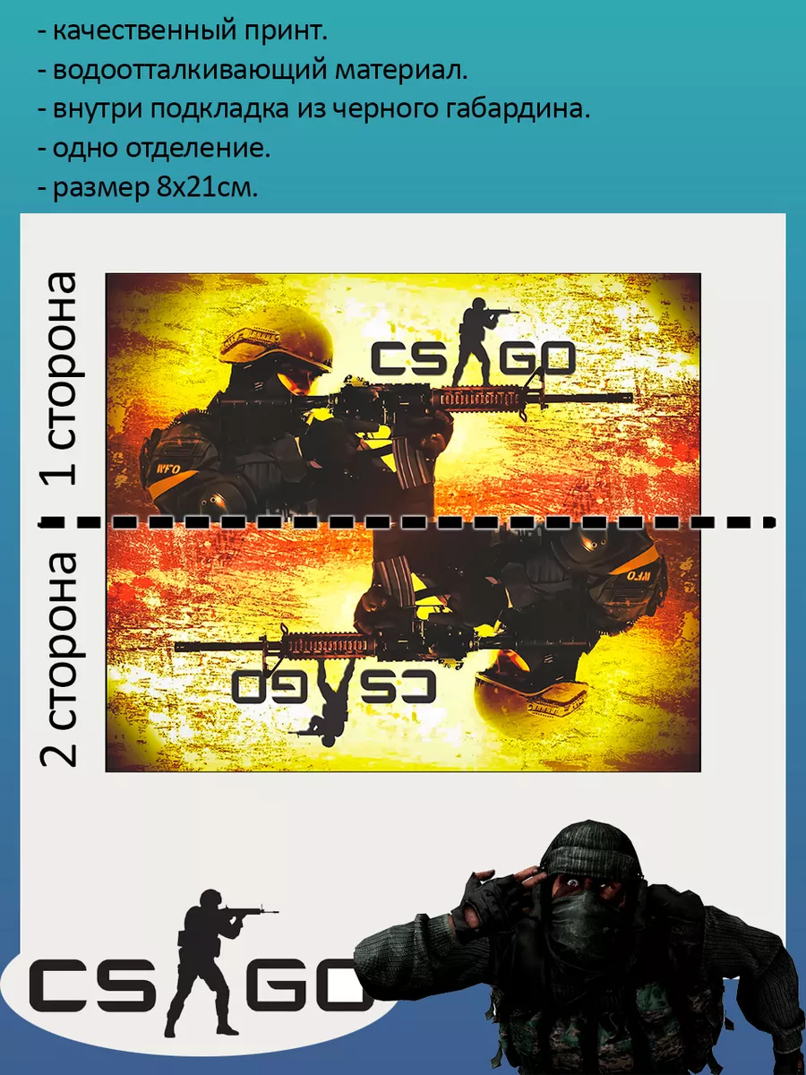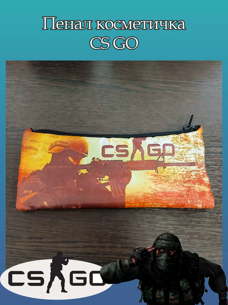 Пенал школьный с большой молнией и с одним вместительным отделением. Изображение из компьютерная игра Контр Страйк (CS GO). Принт яркий и четкий, устойчивый к выцветанию и стирке.