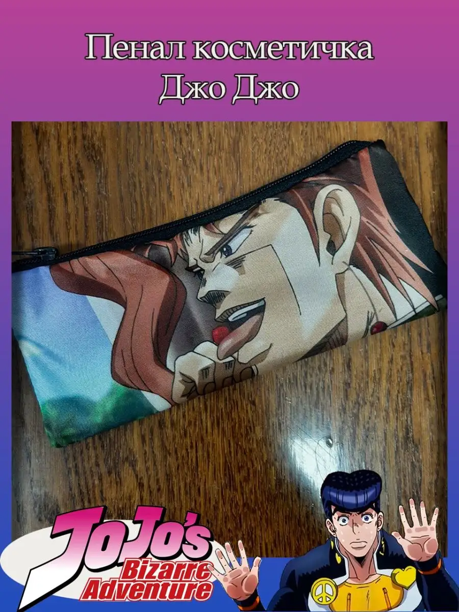 Пенал школьный с большой молнией и с одним вместительным отделением. Изображение из аниме Невероятные приключения Джо Джо (JoJo’s Bizarre Adventure). Принт яркий и четкий, устойчивый к выцветанию и стирке.