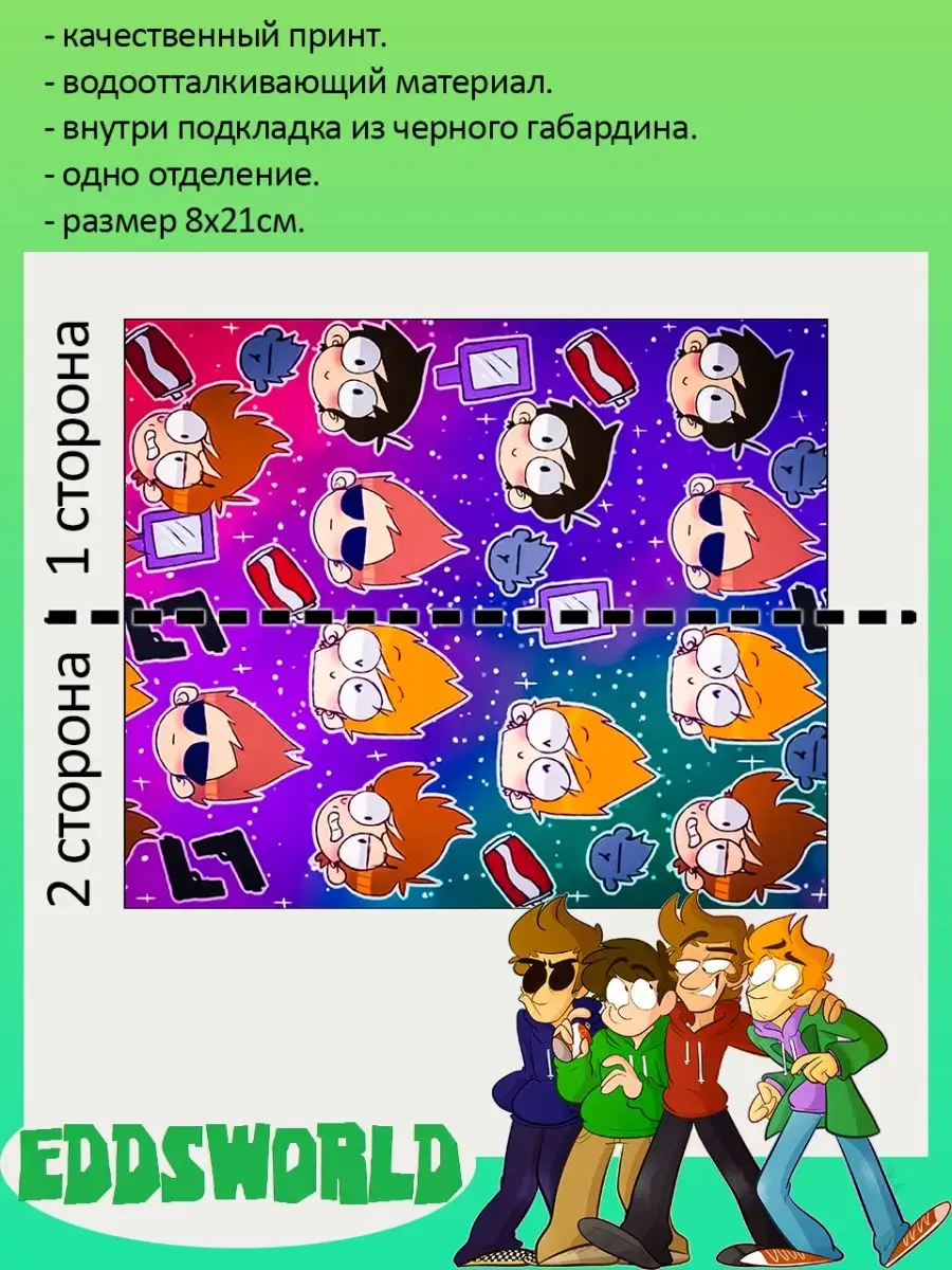Пенал школьный с большой молнией и с одним вместительным отделением. Изображение из сериала Эдсворлд (Eddsworld). Принт яркий и четкий, устойчивый к выцветанию и стирке.