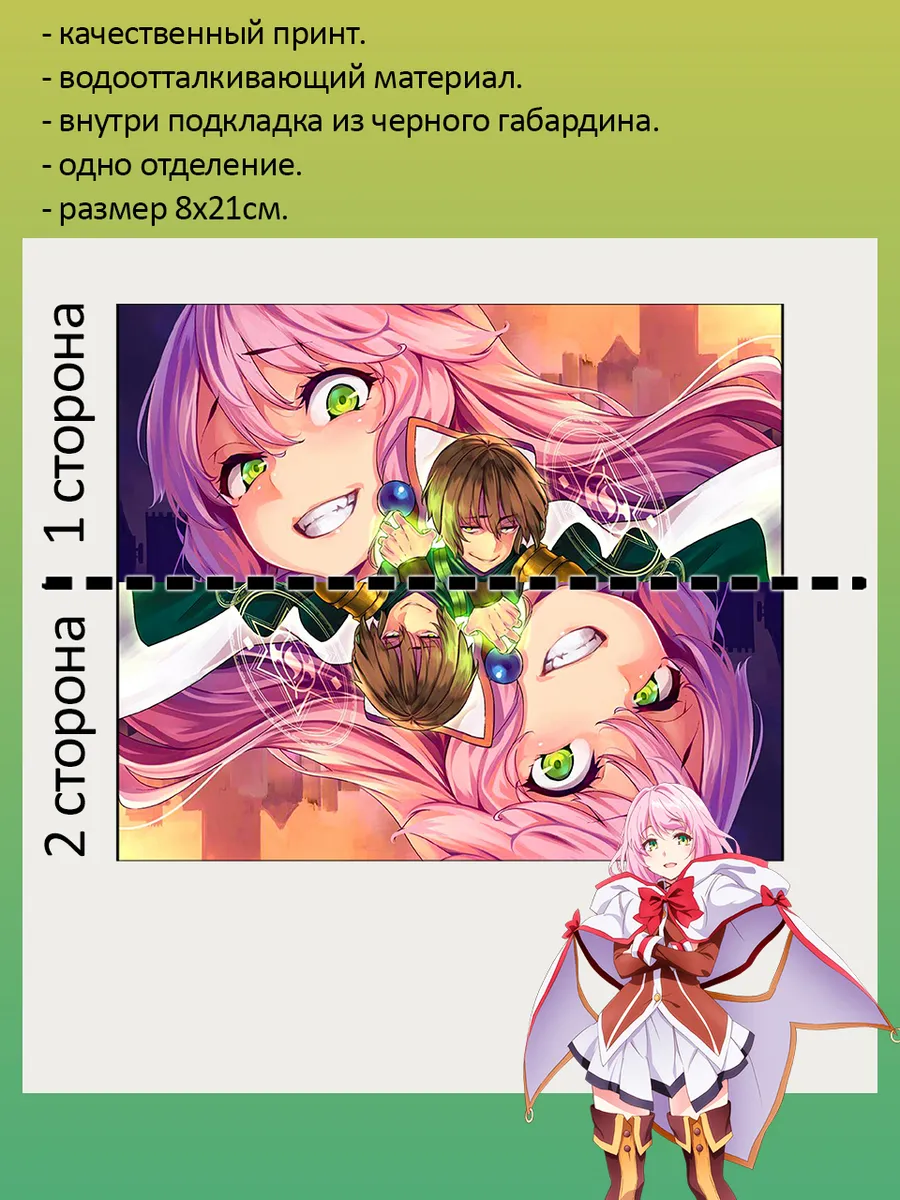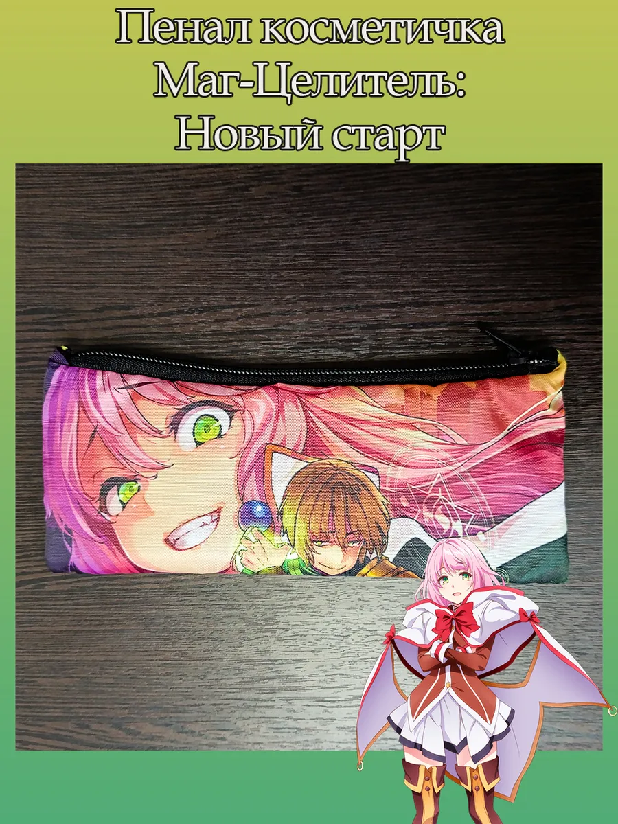 Пенал школьный с большой молнией и с одним вместительным отделением. Изображение из аниме Маг-Целитель Новый старт (Kaifuku Jutsushi no Yarinaoshi). Принт яркий и четкий, устойчивый к выцветанию и стирке.