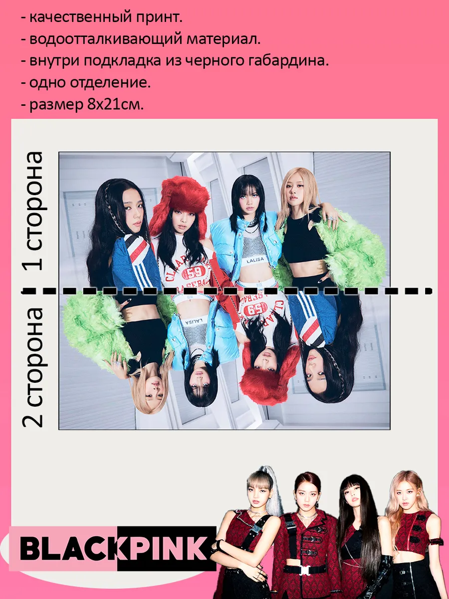 Пенал школьный с большой молнией и с одним вместительным отделением. Изображение к-поп группа Блэкпинк ( Blackpink ). Принт яркий и четкий, устойчивый к выцветанию и стирке.