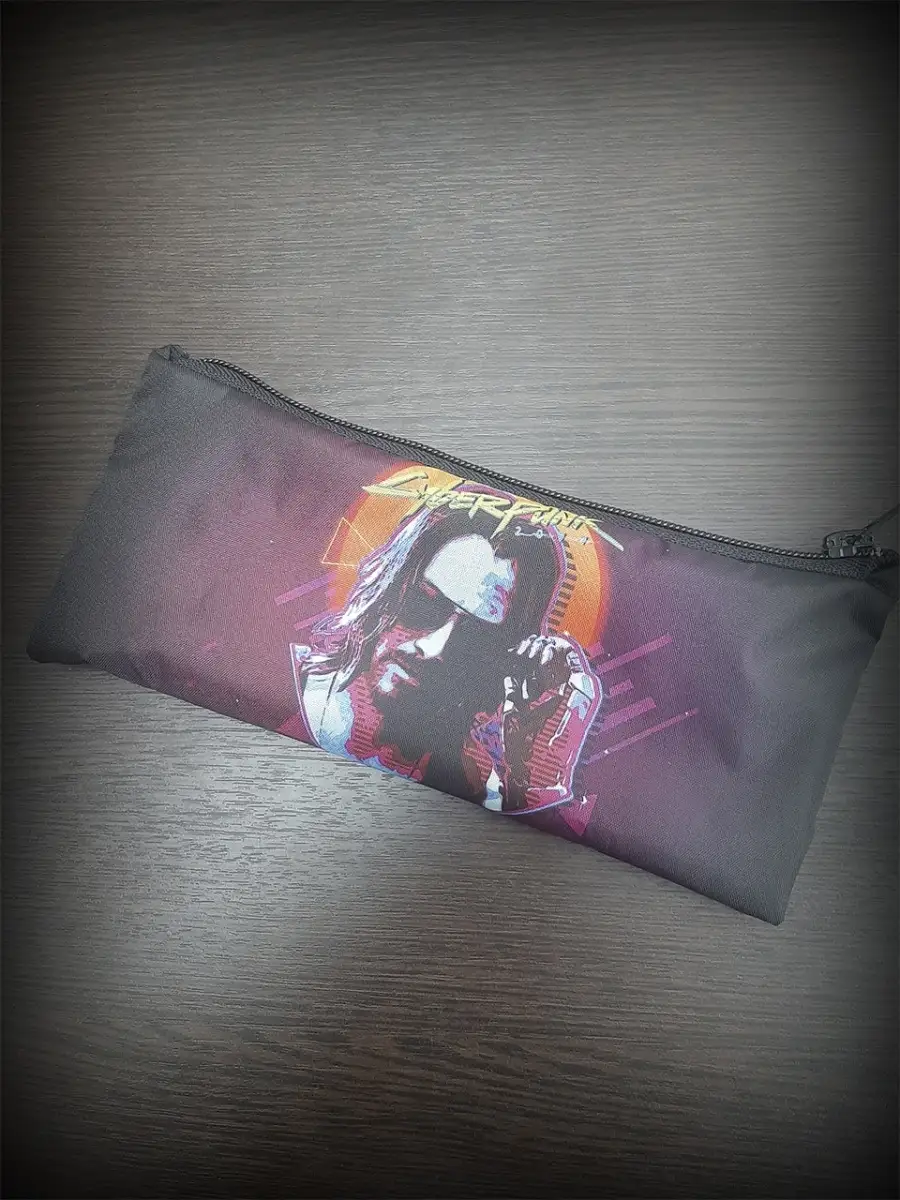 Пенал школьный с большой молнией и с одним вместительным отделением. Изображение из игры Киберпанк (Cyberpunk). Принт яркий и четкий, устойчивый к выцветанию и стирке.