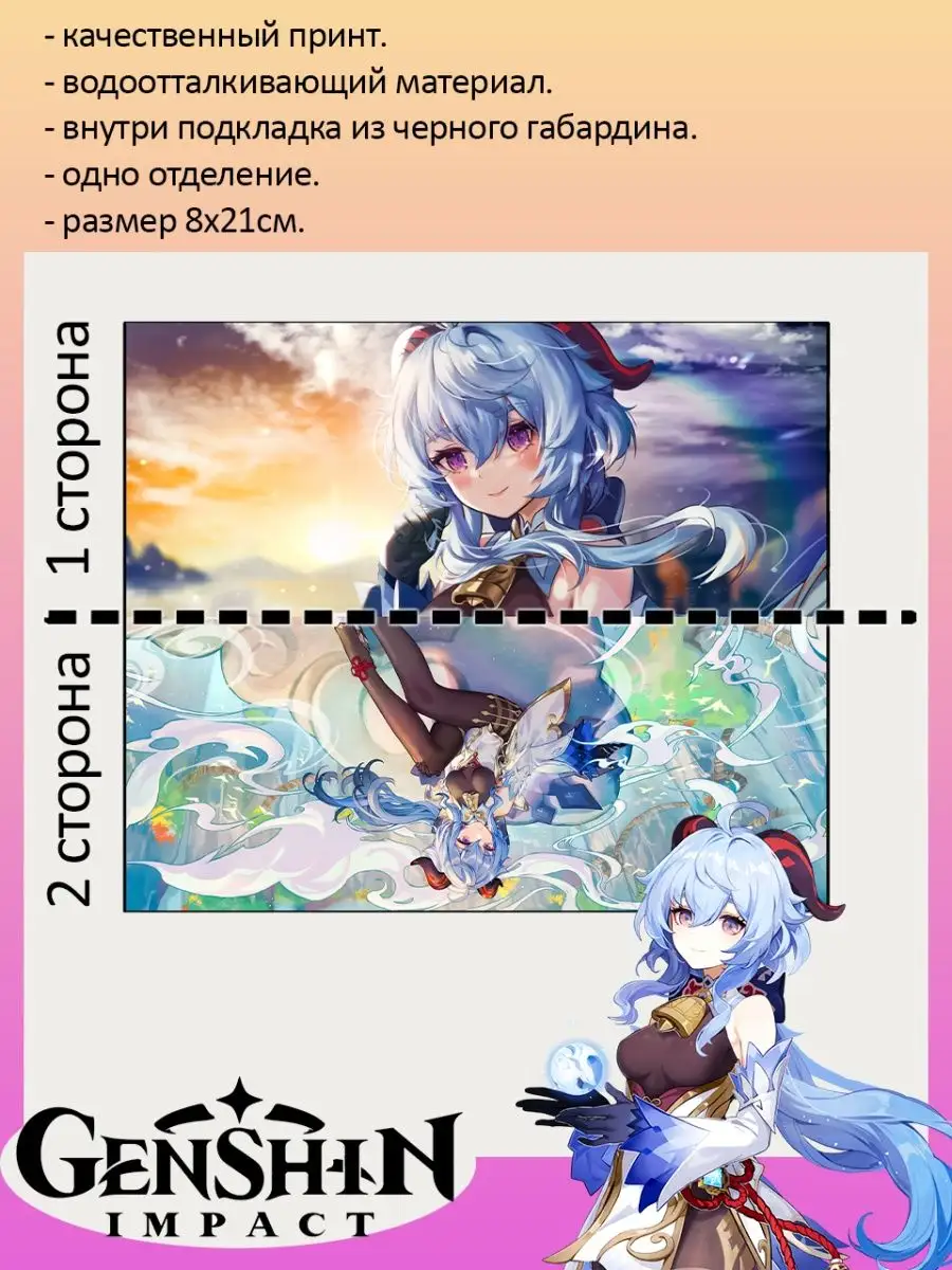 Пенал школьный с большой молнией и с одним вместительным отделением. Изображение из игры Геншин Импакт (Genshin Impact). Принт яркий и четкий, устойчивый к выцветанию и стирке.