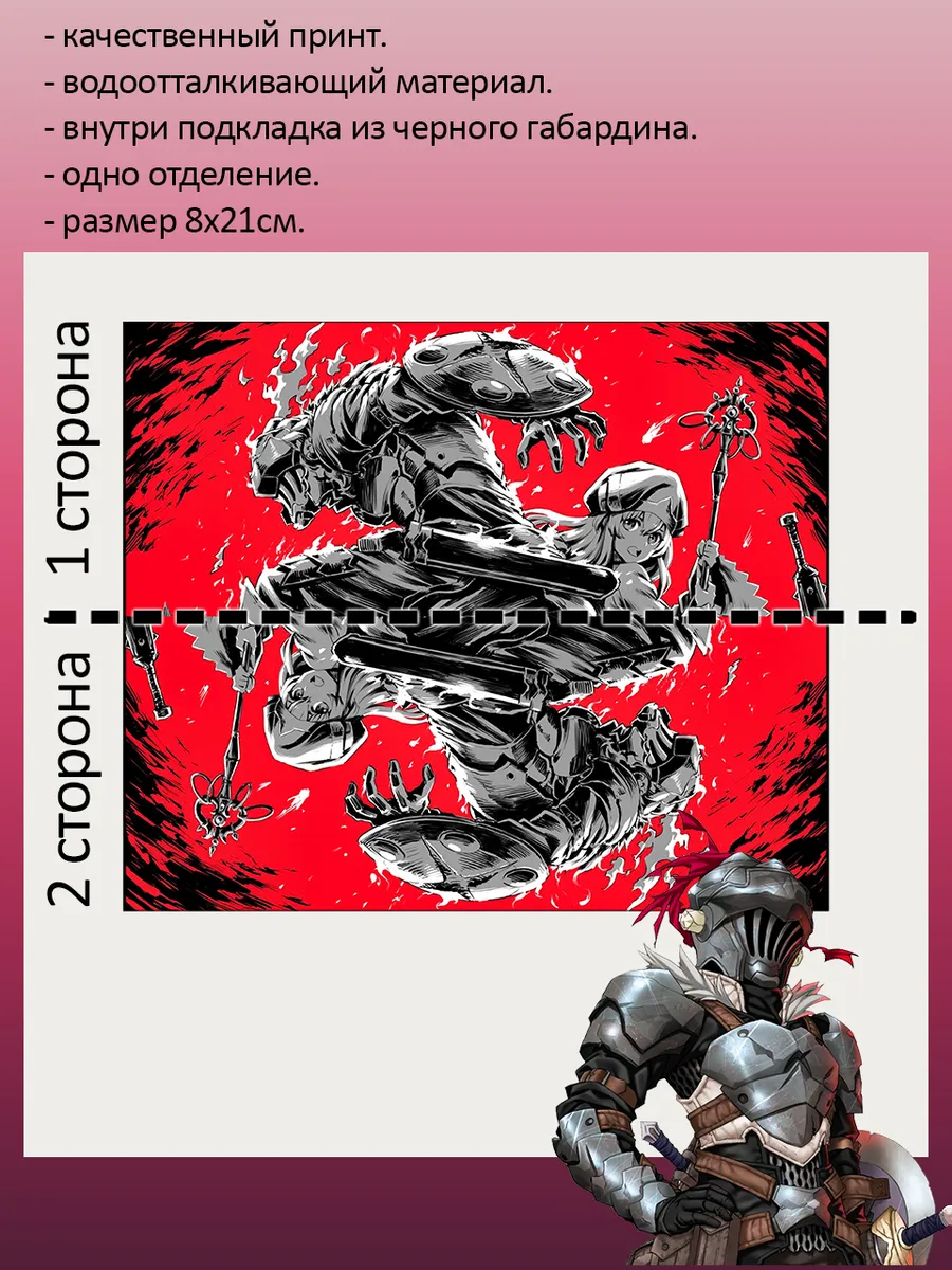 Пенал школьный с большой молнией и с одним вместительным отделением. Изображение из аниме Убийца гоблинов (Goblin Slayer). Принт яркий и четкий, устойчивый к выцветанию и стирке.