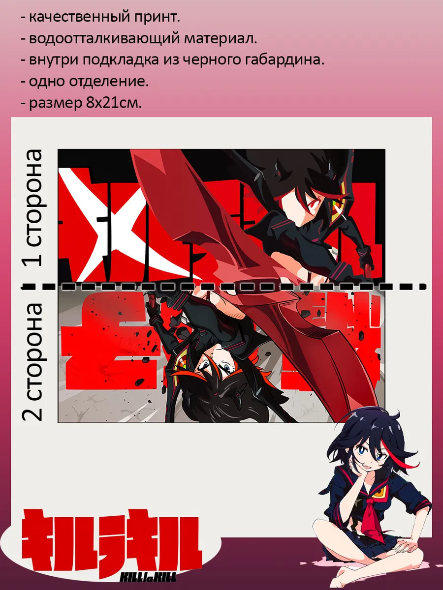 Пенал школьный с большой молнией и с одним вместительным отделением. Изображение из аниме Килл ла Килл (Kill la Kill). Принт яркий и четкий, устойчивый к выцветанию и стирке.