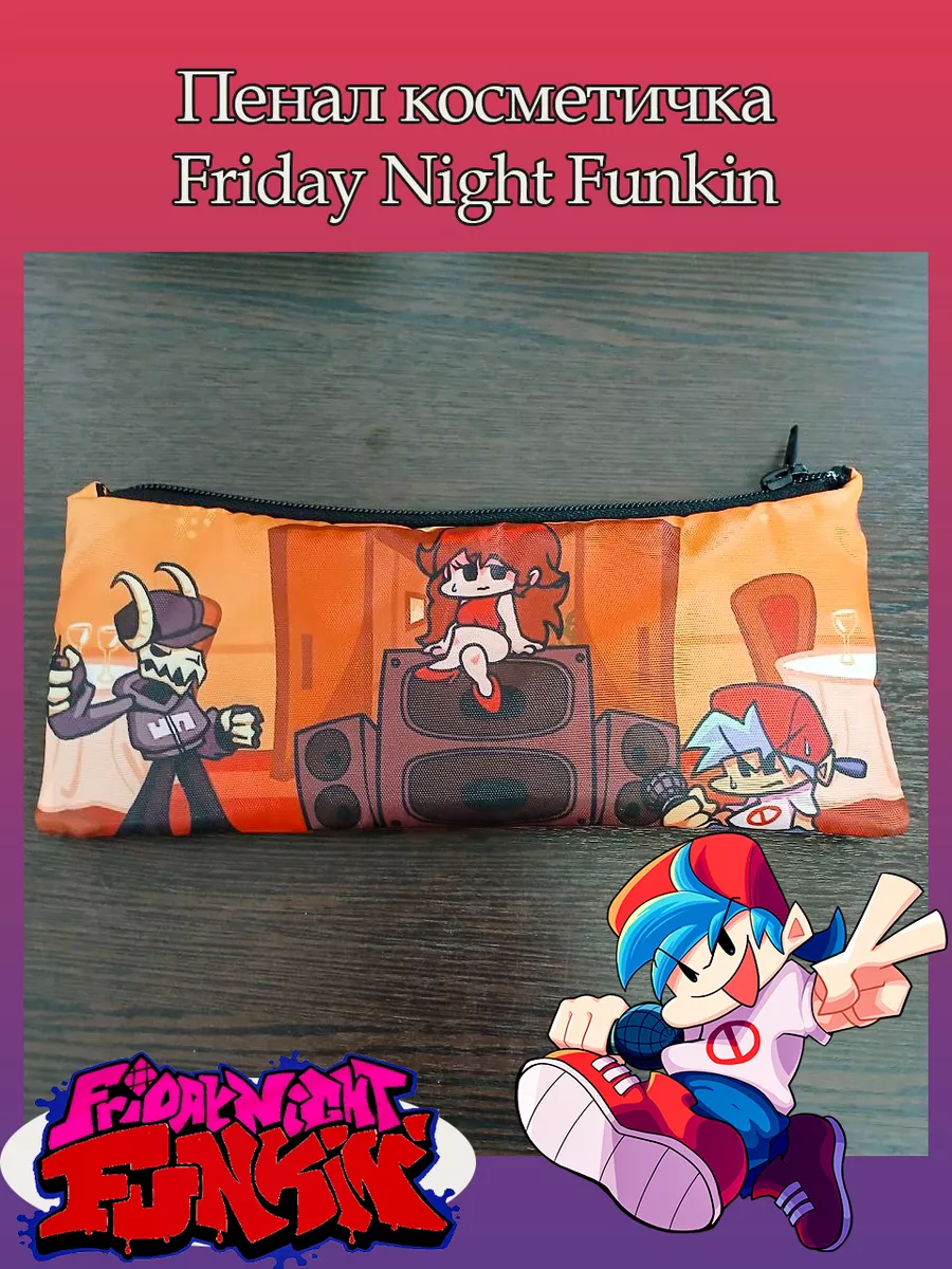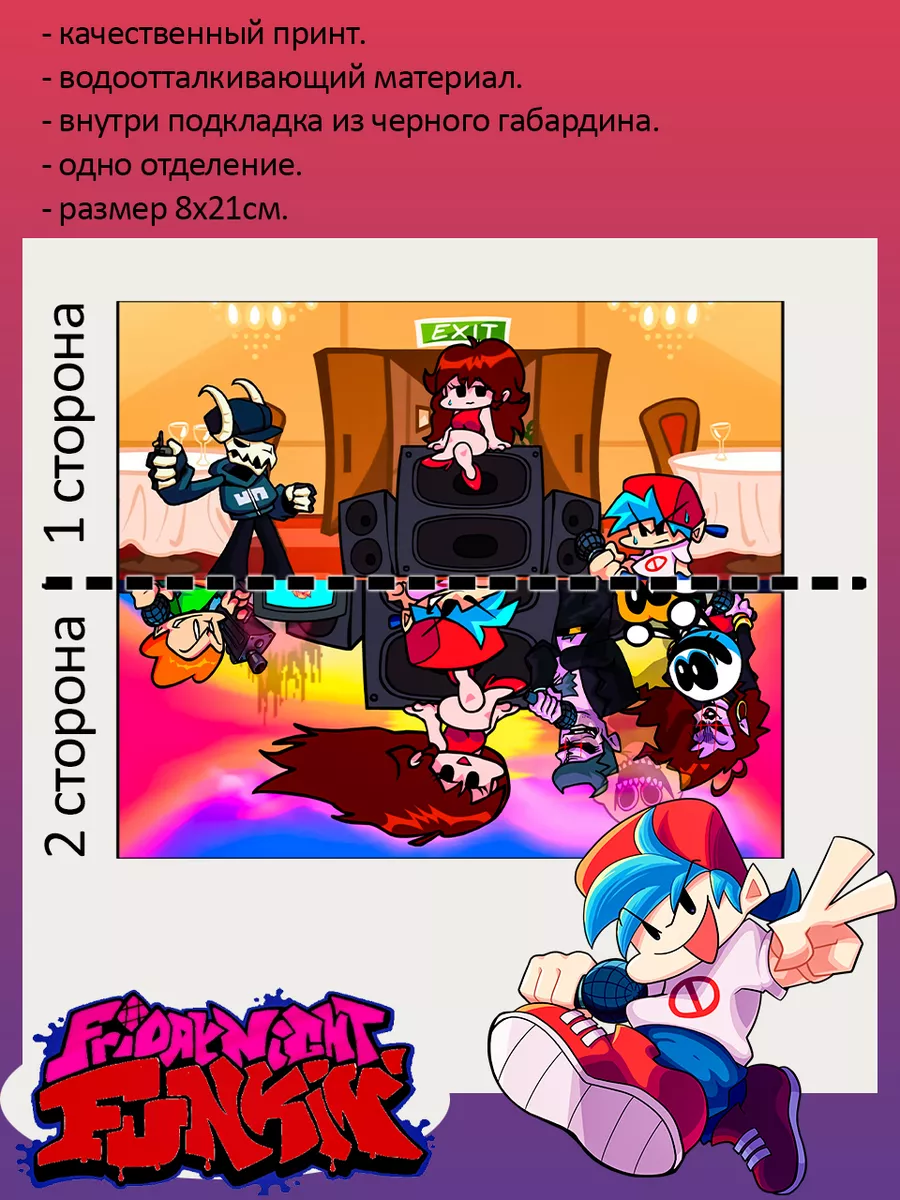 Пенал школьный с большой молнией и с одним вместительным отделением. Изображение из компьютерная игра Фридэй Найт Фанкин (friday night funkin). Принт яркий и четкий, устойчивый к выцветанию и стирке.