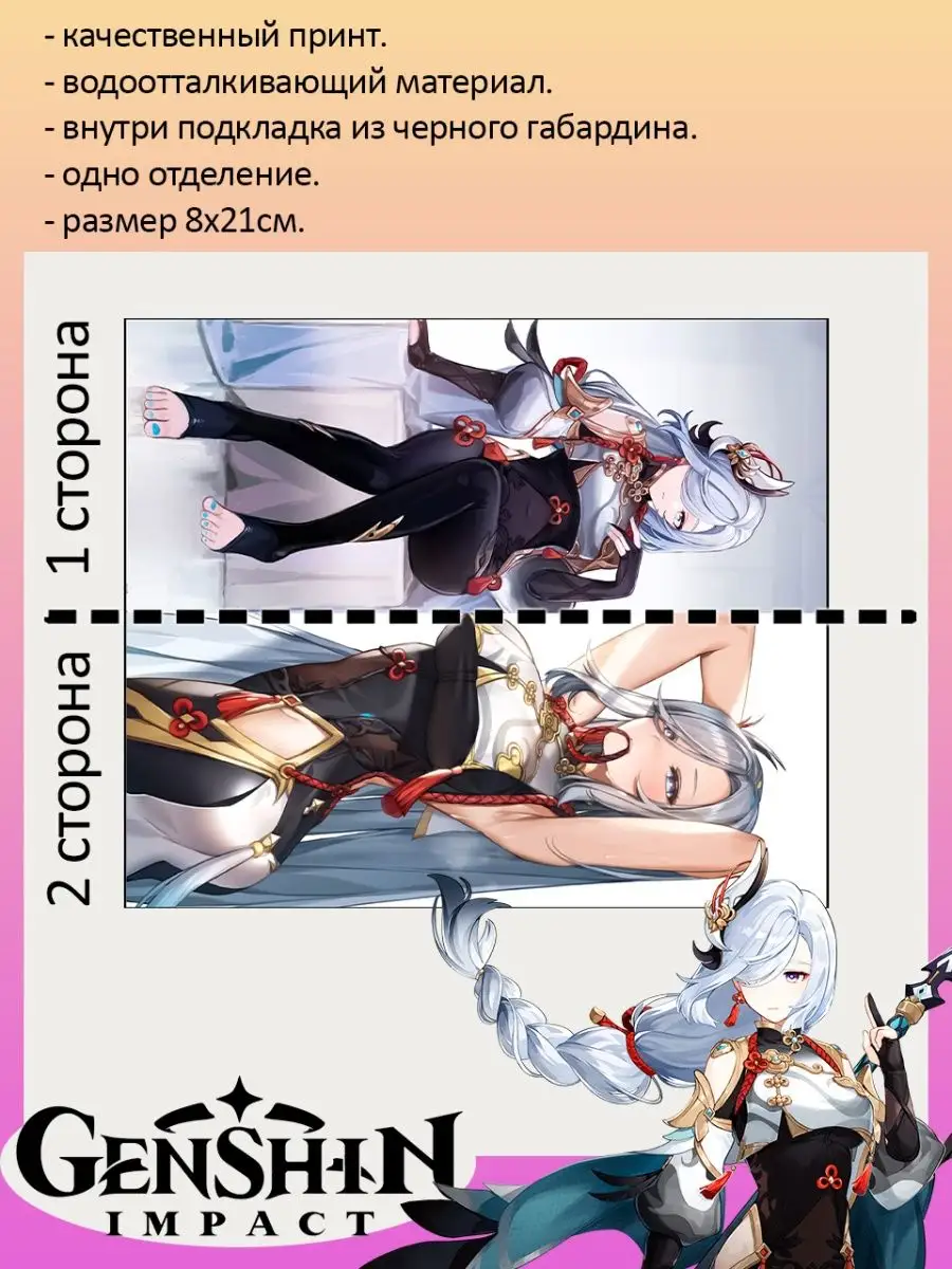 Пенал школьный с большой молнией и с одним вместительным отделением. Изображение из игры Геншин Импакт (Genshin Impact). Принт яркий и четкий, устойчивый к выцветанию и стирке.