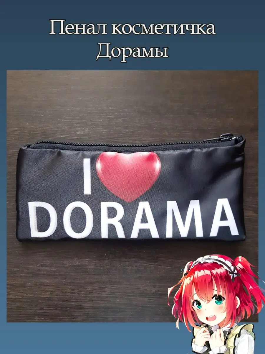 Пенал школьный с большой молнией и с одним вместительным отделением. Изображение Я люблю Дорамы (I love Dorama). Принт яркий и четкий, устойчивый к выцветанию и стирке.