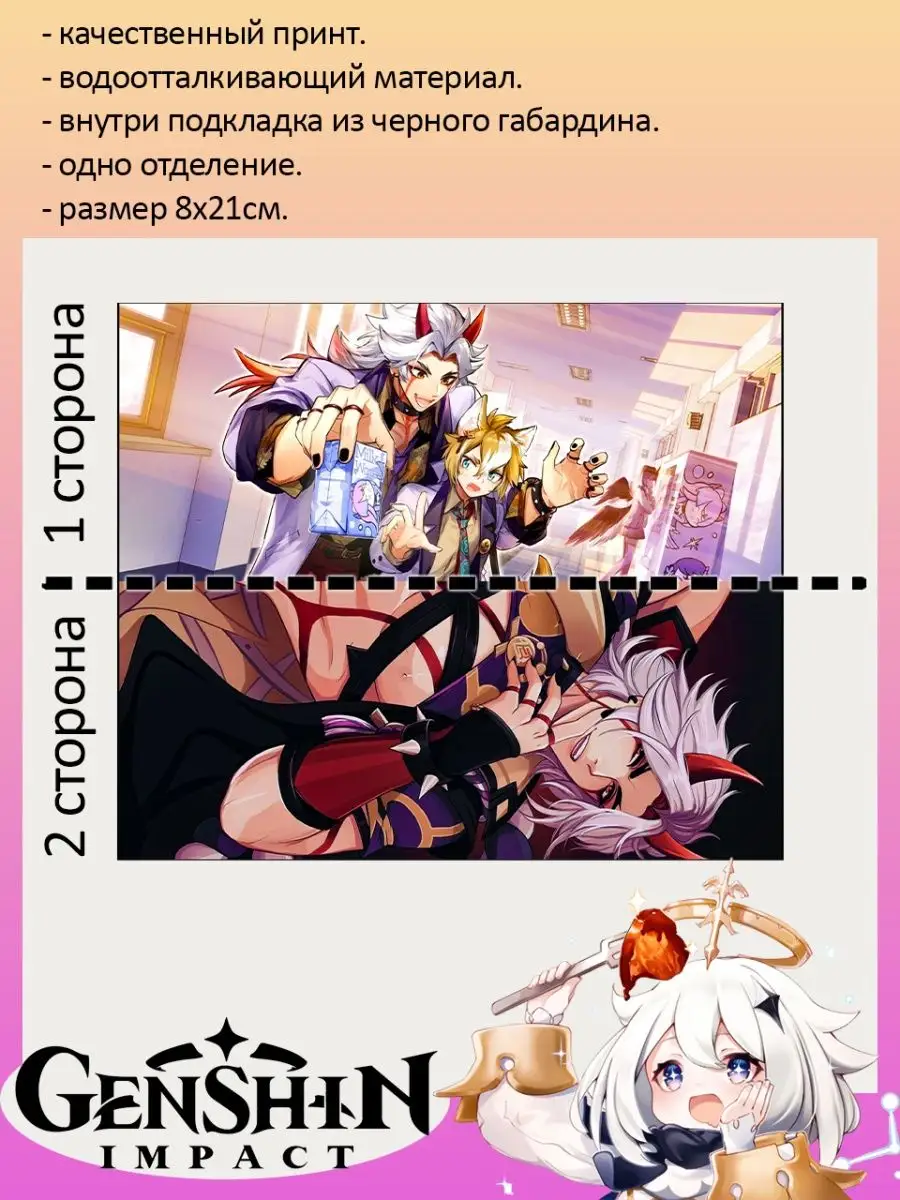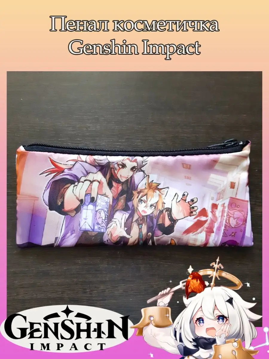 Пенал школьный с большой молнией и с одним вместительным отделением. Изображение из игры Геншин Импакт (Genshin Impact). Принт яркий и четкий, устойчивый к выцветанию и стирке.