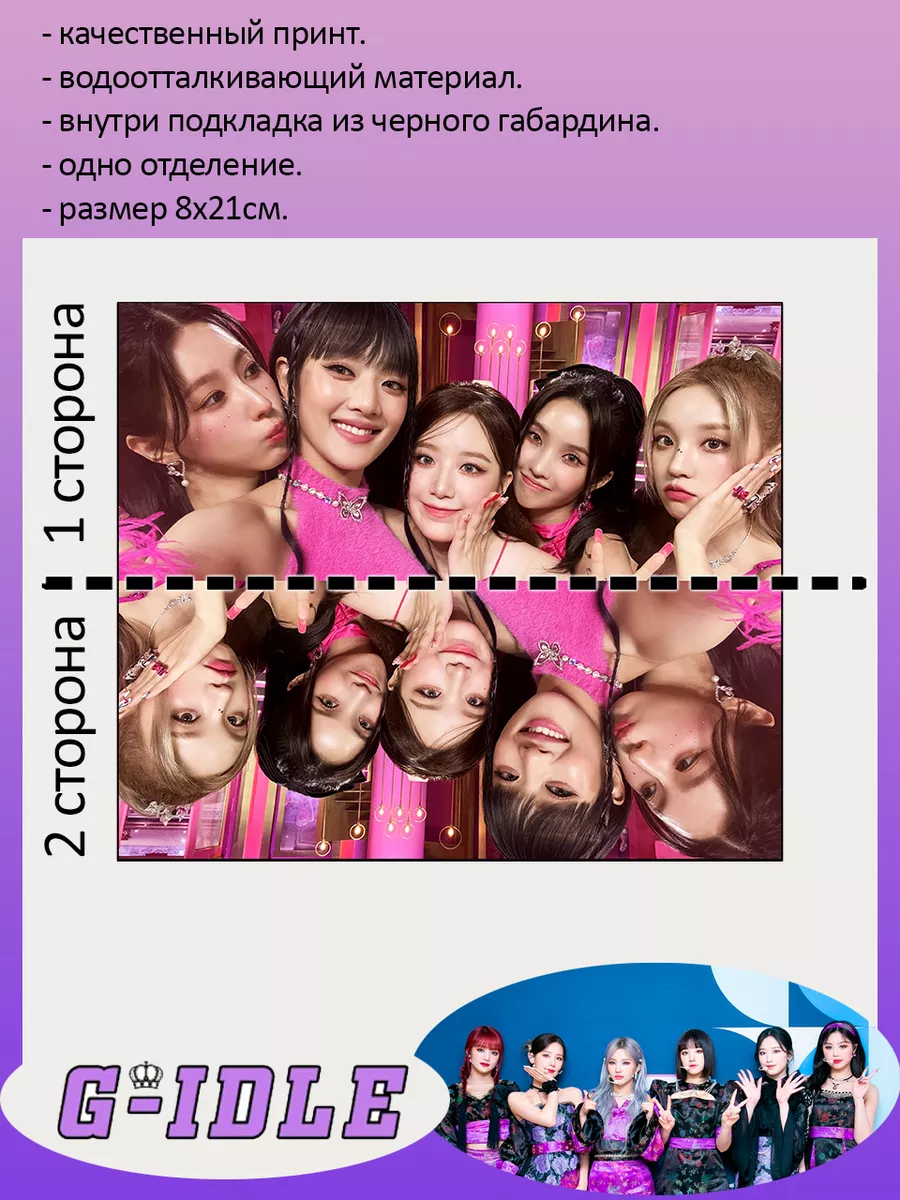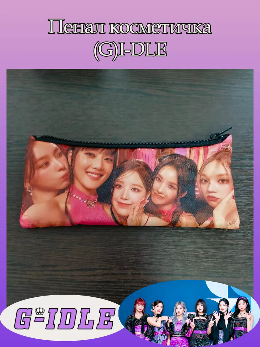 Пенал школьный с большой молнией и с одним вместительным отделением. Изображение из К-поп группа Джи Айдл ((G)I-DLE). Принт яркий и четкий, устойчивый к выцветанию и стирке.