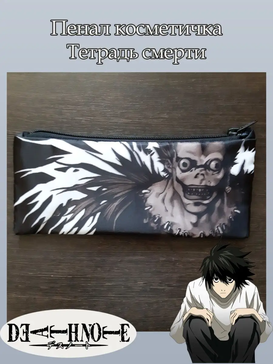 Пенал школьный с большой молнией и с одним вместительным отделением. Изображение из аниме Тетрадь смерти (Death Note). Принт яркий и четкий, устойчивый к выцветанию и стирке.