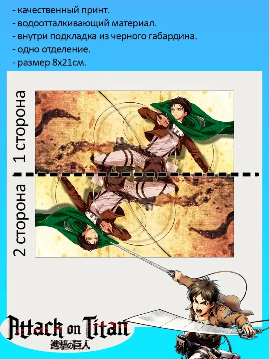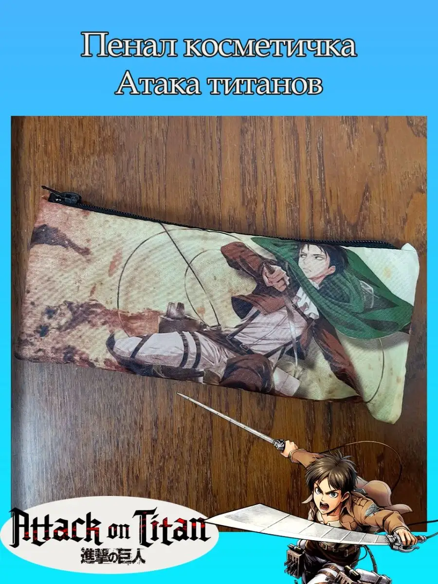 Пенал школьный с большой молнией и с одним вместительным отделением. Изображение из аниме Атака титанов (Attack on Titan). Принт яркий и четкий, устойчивый к выцветанию и стирке.