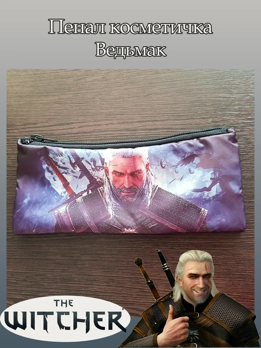 Пенал школьный с большой молнией и с одним вместительным отделением. Изображение из игры Ведьмак (The Witcher). Принт яркий и четкий, устойчивый к выцветанию и стирке.