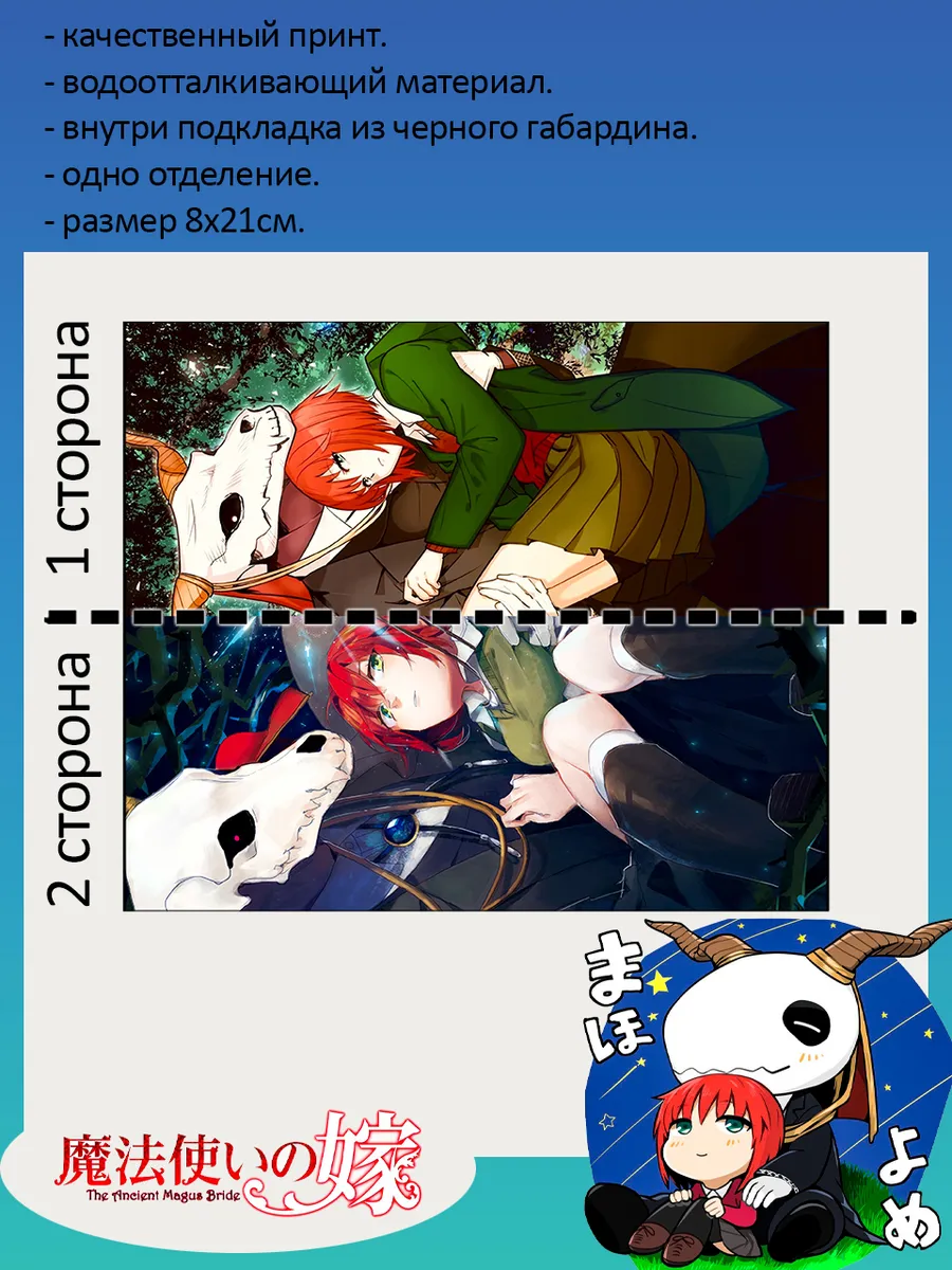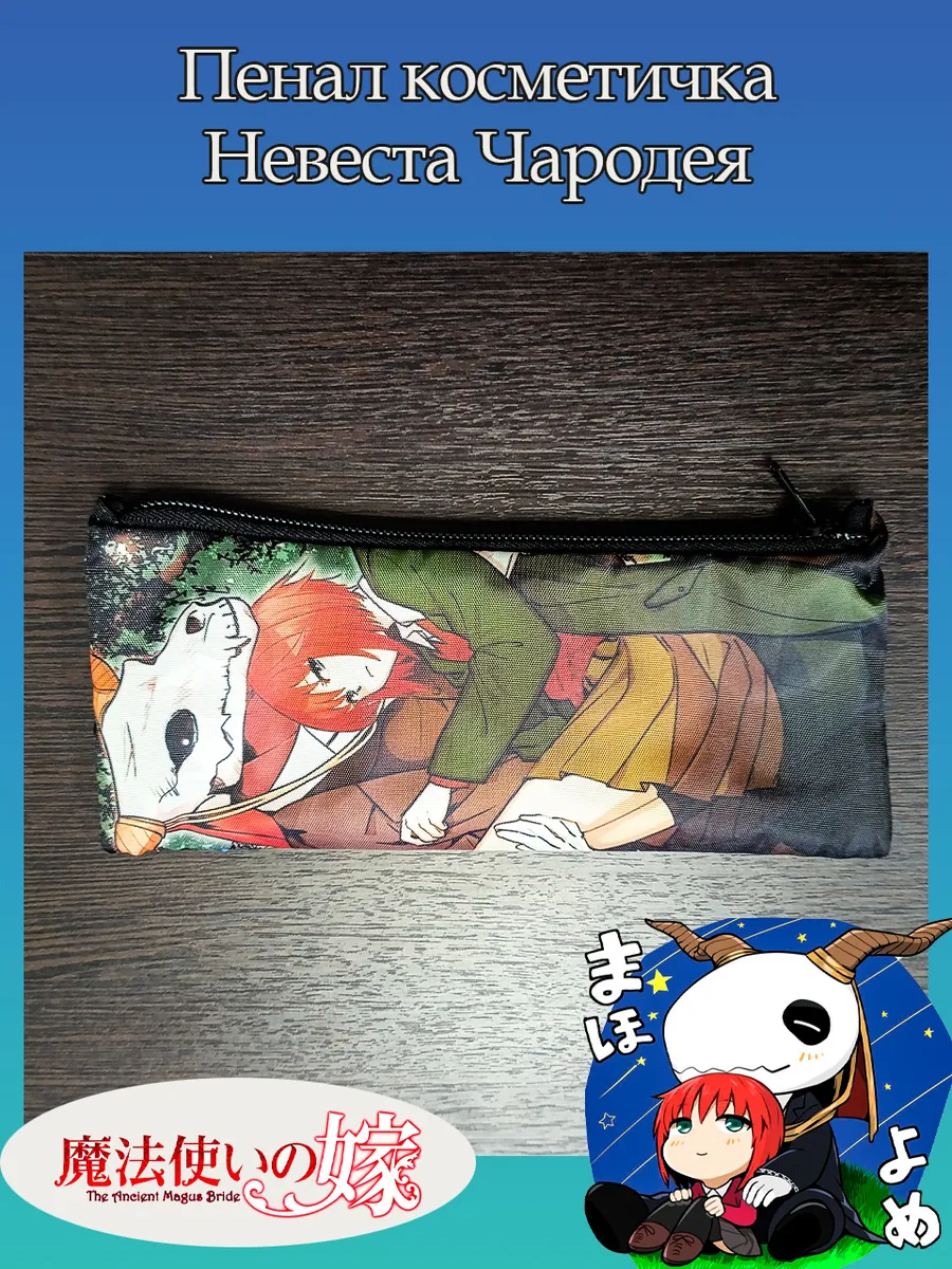 Пенал школьный с большой молнией и с одним вместительным отделением. Изображение из аниме Невеста Чародея (The Ancient Magus' Bride). Принт яркий и четкий, устойчивый к выцветанию и стирке.
