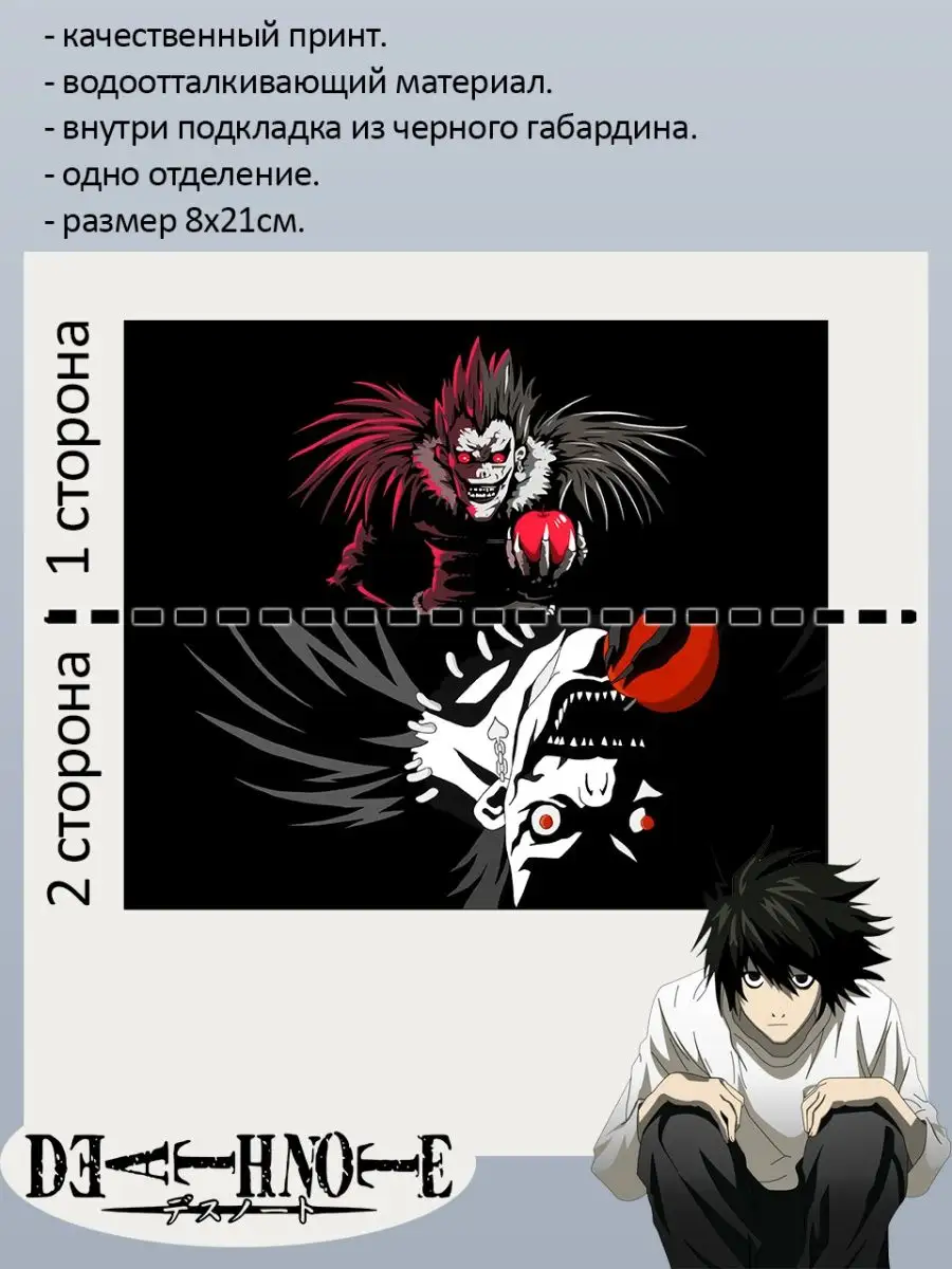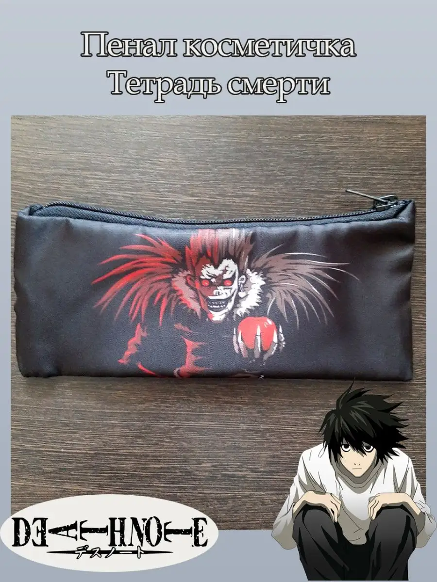 Пенал школьный с большой молнией и с одним вместительным отделением. Изображение из аниме Тетрадь смерти (Death Note). Принт яркий и четкий, устойчивый к выцветанию и стирке.