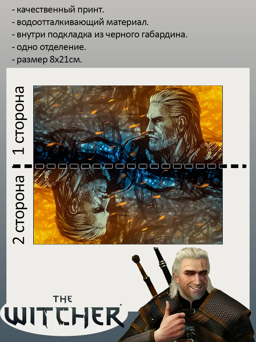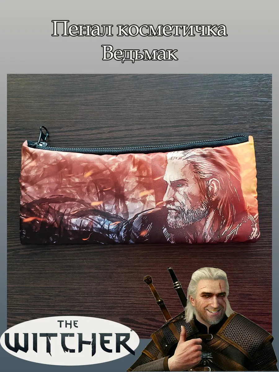 Пенал школьный с большой молнией и с одним вместительным отделением. Изображение из игры Ведьмак (The Witcher). Принт яркий и четкий, устойчивый к выцветанию и стирке.