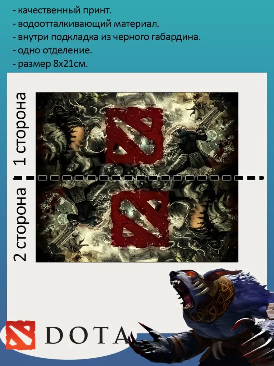 Пенал школьный с большой молнией и с одним вместительным отделением. Изображение из игры Дота 2 (Dota 2). Принт яркий и четкий, устойчивый к выцветанию и стирке.