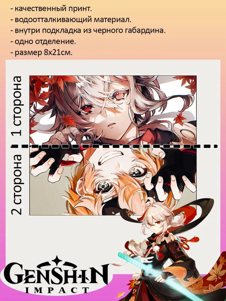 Пенал школьный с большой молнией и с одним вместительным отделением. Изображение из игры Геншин Импакт (Genshin Impact). Принт яркий и четкий, устойчивый к выцветанию и стирке.
