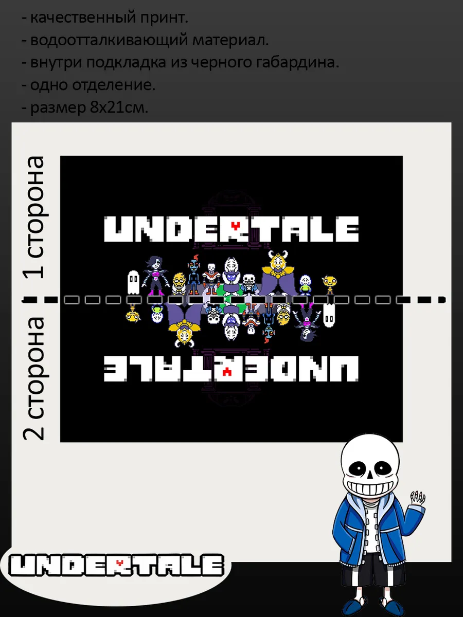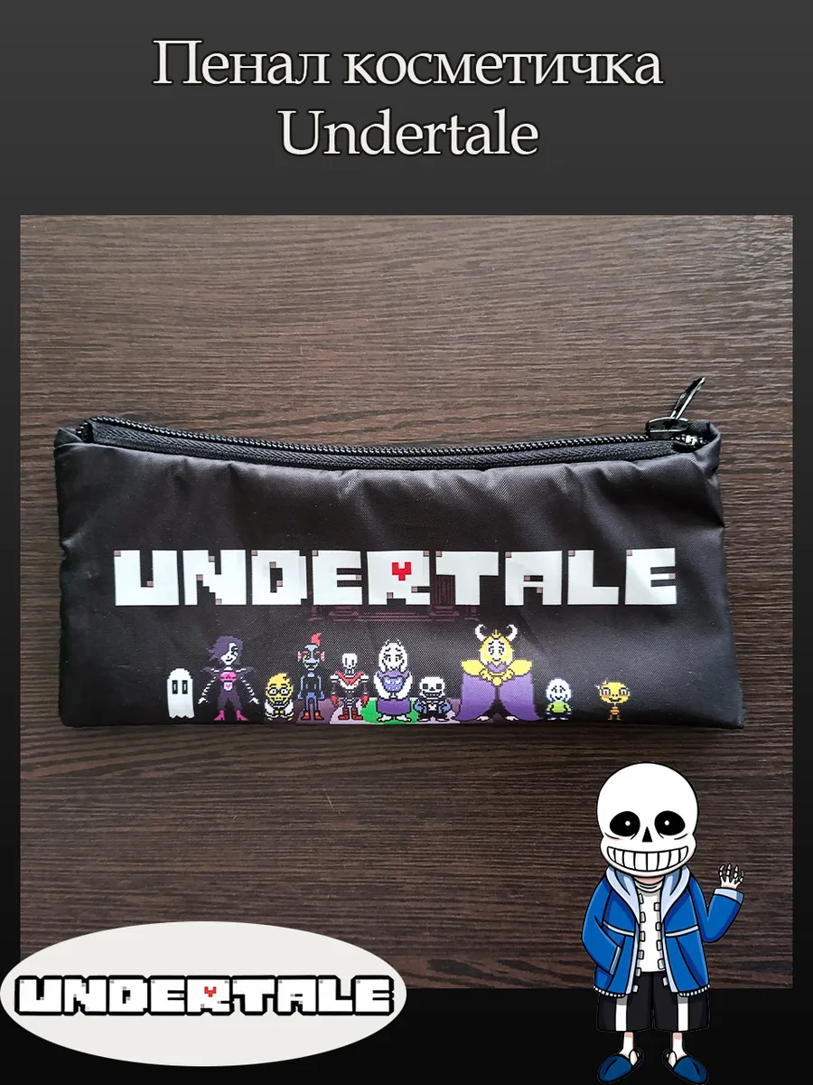 Пенал школьный с большой молнией и с одним вместительным отделением. Изображение из игры Андертейл (Undertale). Принт яркий и четкий, устойчивый к выцветанию и стирке.