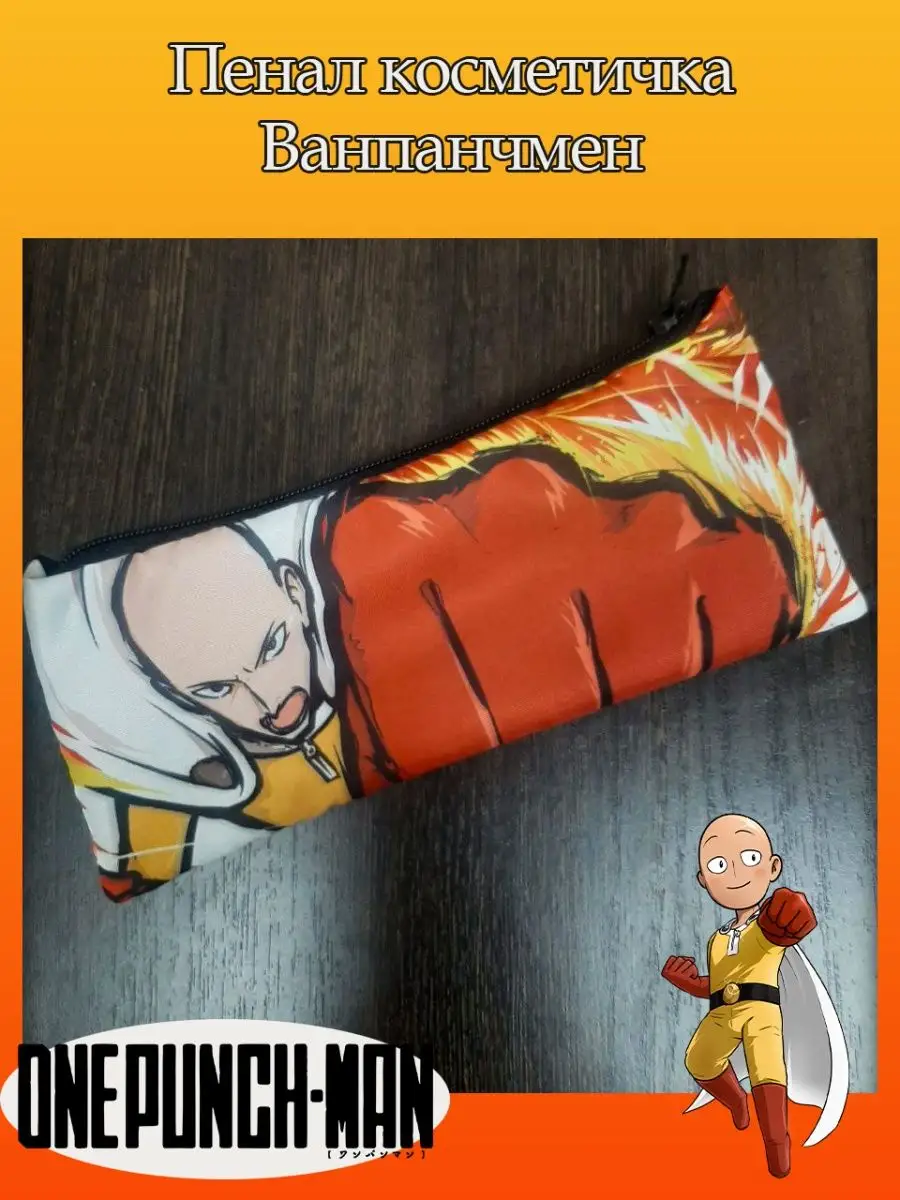 Пенал школьный с большой молнией и с одним вместительным отделением. Изображение из аниме Ванпанчмен (One-Punch Man). Принт яркий и четкий, устойчивый к выцветанию и стирке.