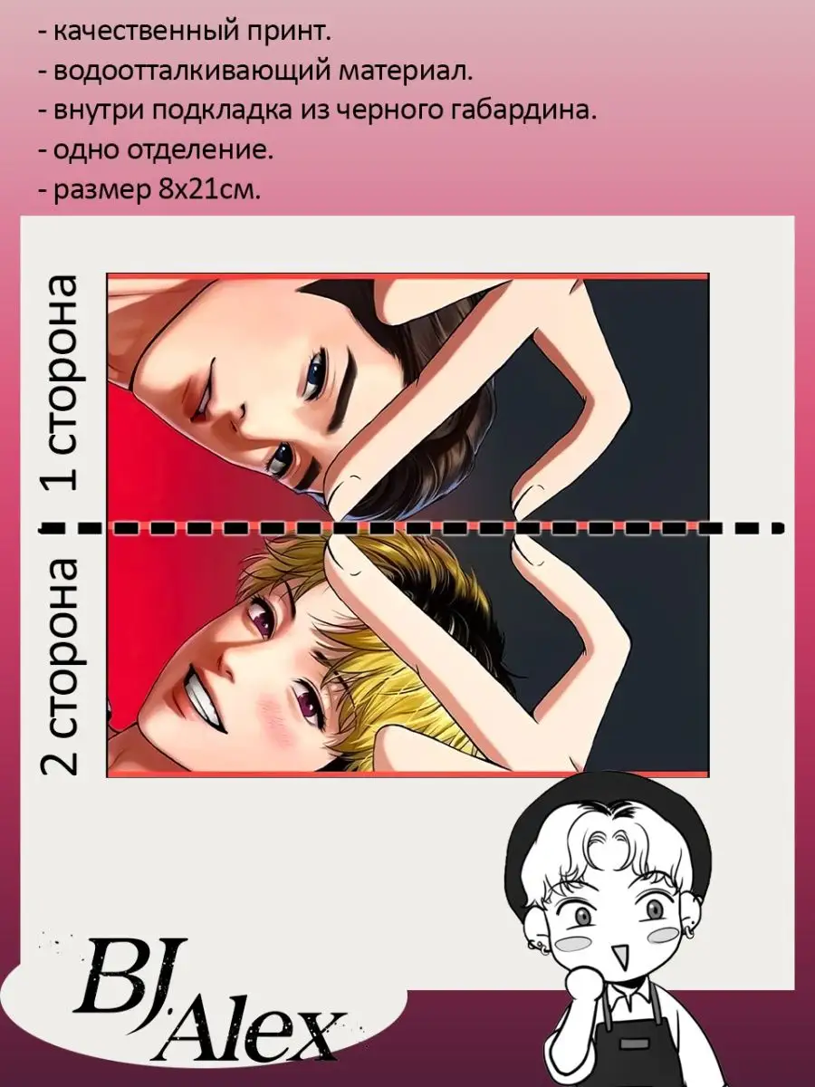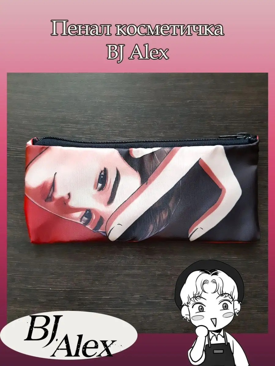 Пенал школьный с большой молнией и с одним вместительным отделением. Изображение из манги Би Джей Алекс (BJ Alex). Принт яркий и четкий, устойчивый к выцветанию и стирке.