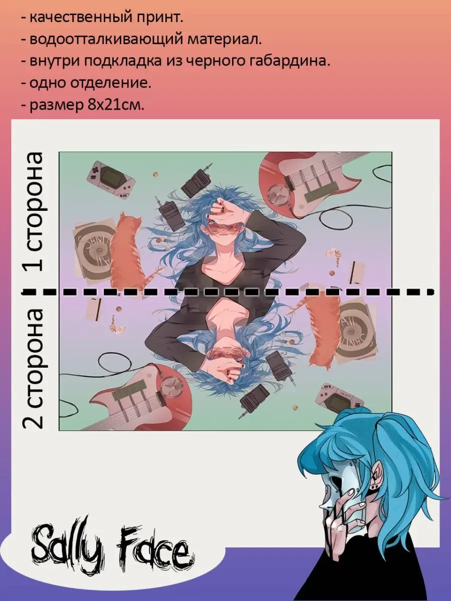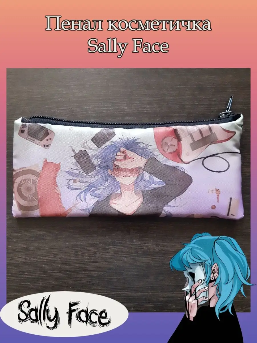 Пенал школьный с большой молнией и с одним вместительным отделением. Изображение из игры Салли Фэйс (Sally Face). Принт яркий и четкий, устойчивый к выцветанию и стирке.