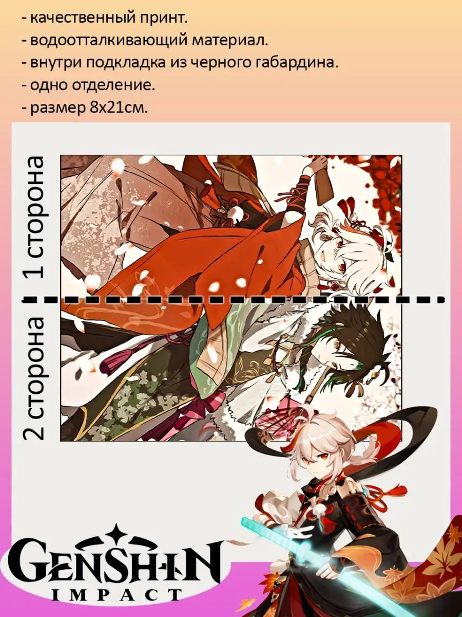 Пенал школьный с большой молнией и с одним вместительным отделением. Изображение из игры Геншин Импакт (Genshin Impact). Принт яркий и четкий, устойчивый к выцветанию и стирке.