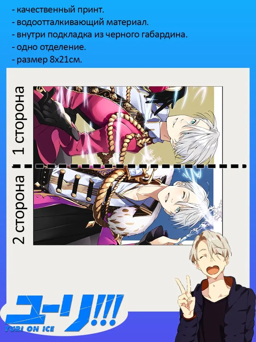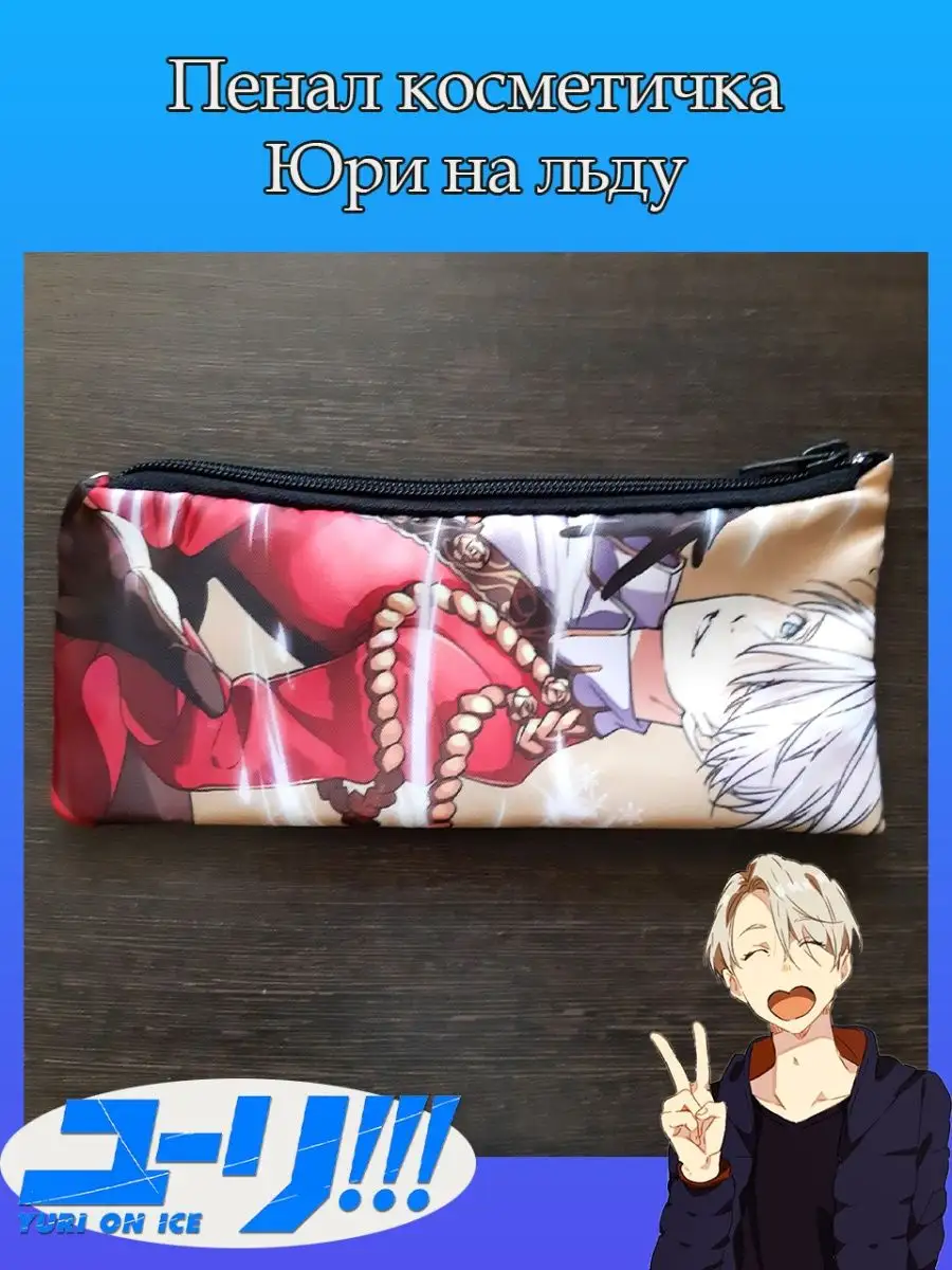 Пенал школьный с большой молнией и с одним вместительным отделением. Изображение из аниме Юри на льду (Yuri!!! On Ice). Принт яркий и четкий, устойчивый к выцветанию и стирке.